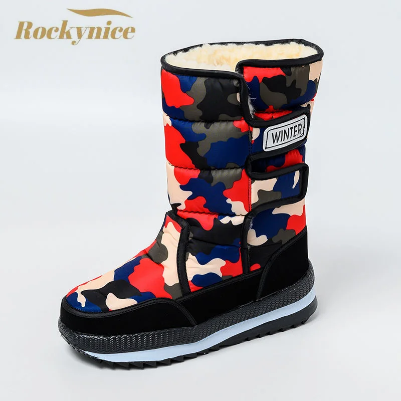 Женские зимние ботинки, водонепроницаемые зимние ботинки с мехом, теплая обувь, Нескользящие ботинки до середины икры, высокие ботинки на толстой плюшевой подкладке