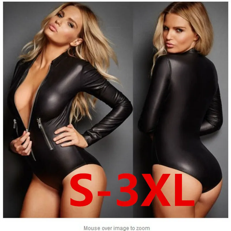 Новинка, черное боди из лакированной кожи, женское нижнее белье, сексуальное женское боди из кожи, латексные костюмы для ночного клуба