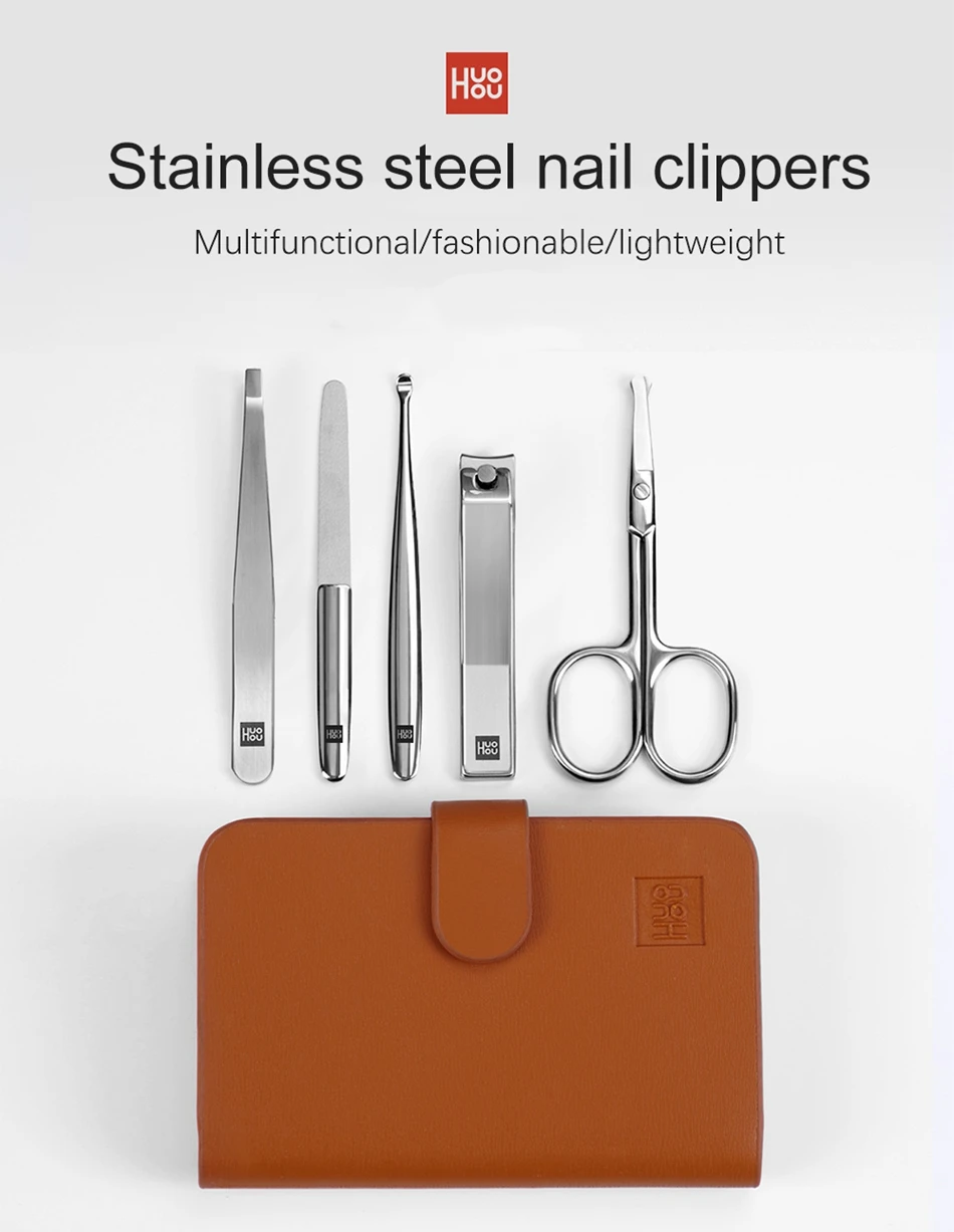 Youpin Huohou клиппер маникюрный набор из 5 предметов из нержавеющей стали Seel резак инструменты с пинцетом для бровей шум триммер ушной мешок для сбора