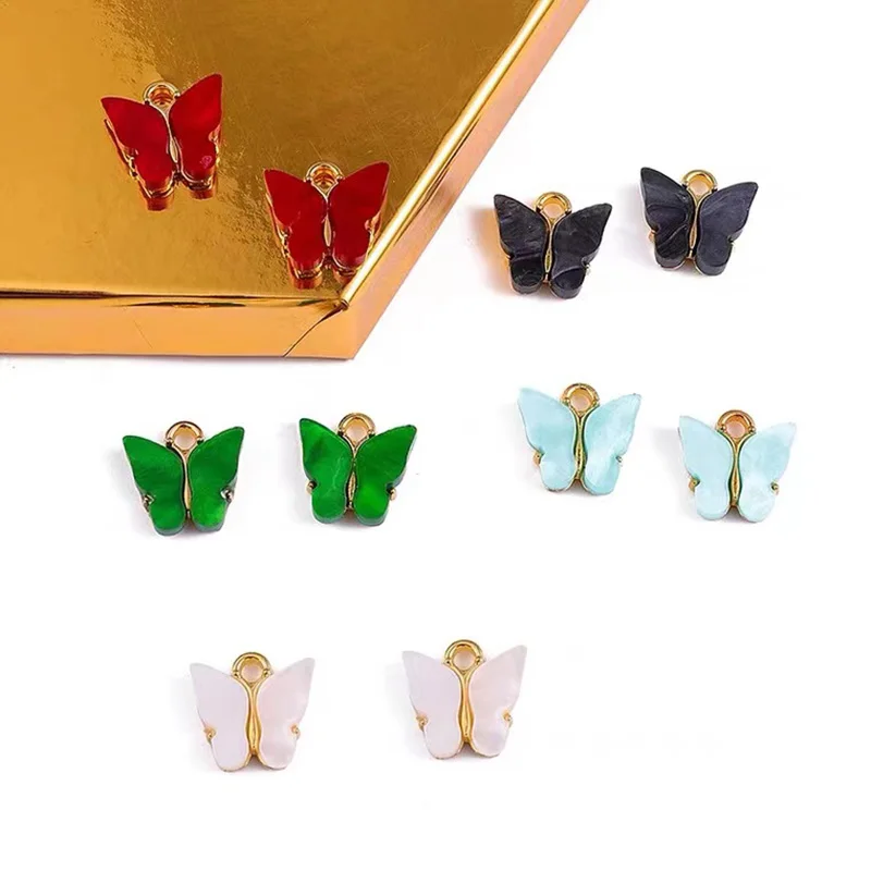 10 шт., 9 цветов, милые Подвески в виде бабочек, 13x13 мм, подвеска в виде животного, очаровательные DIY серьги, аксессуары для ювелирных изделий