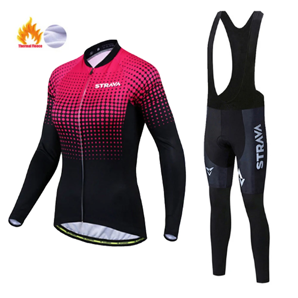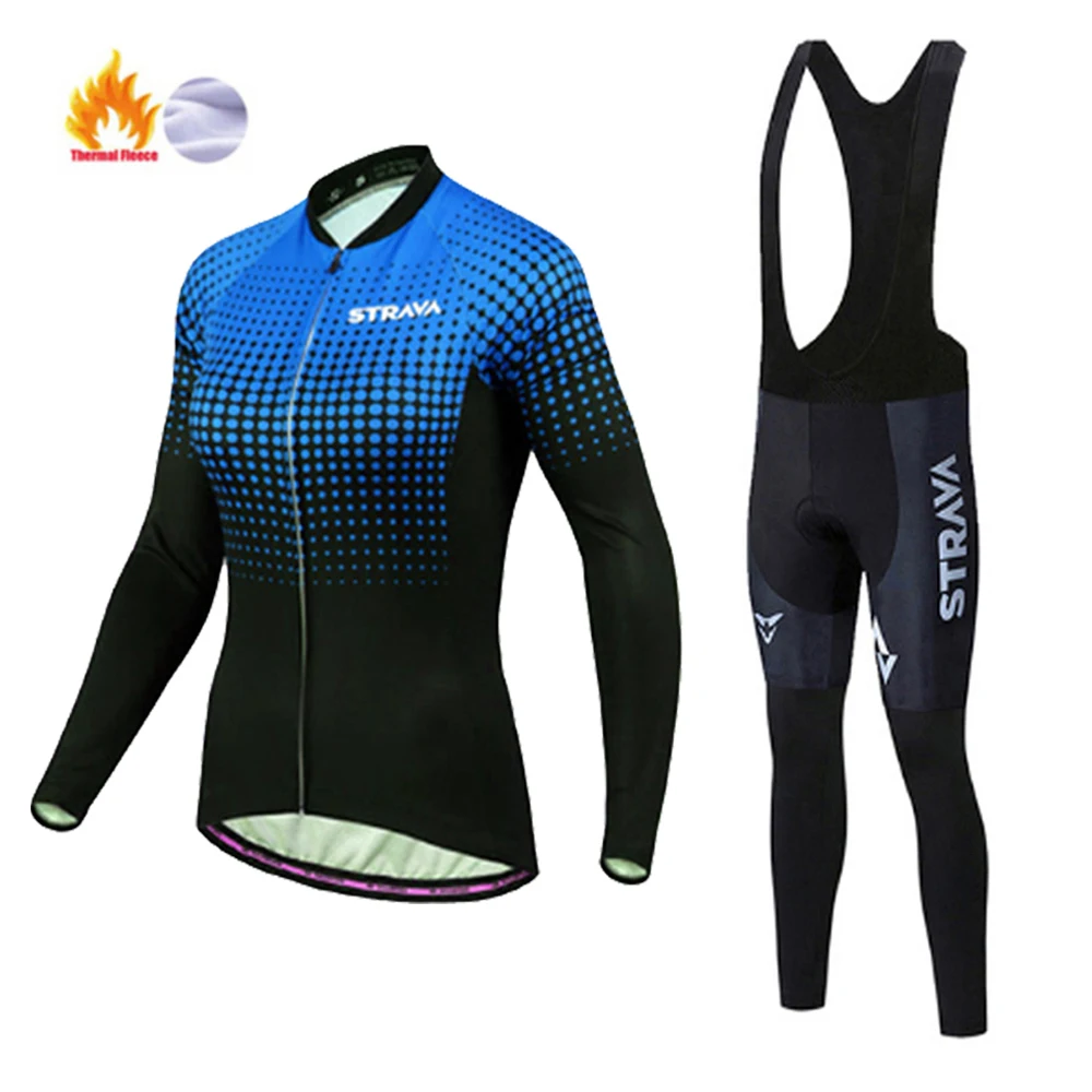 Трикотажный комплект для велоспорта STRAVA Team, Зимняя Теплая Флис...