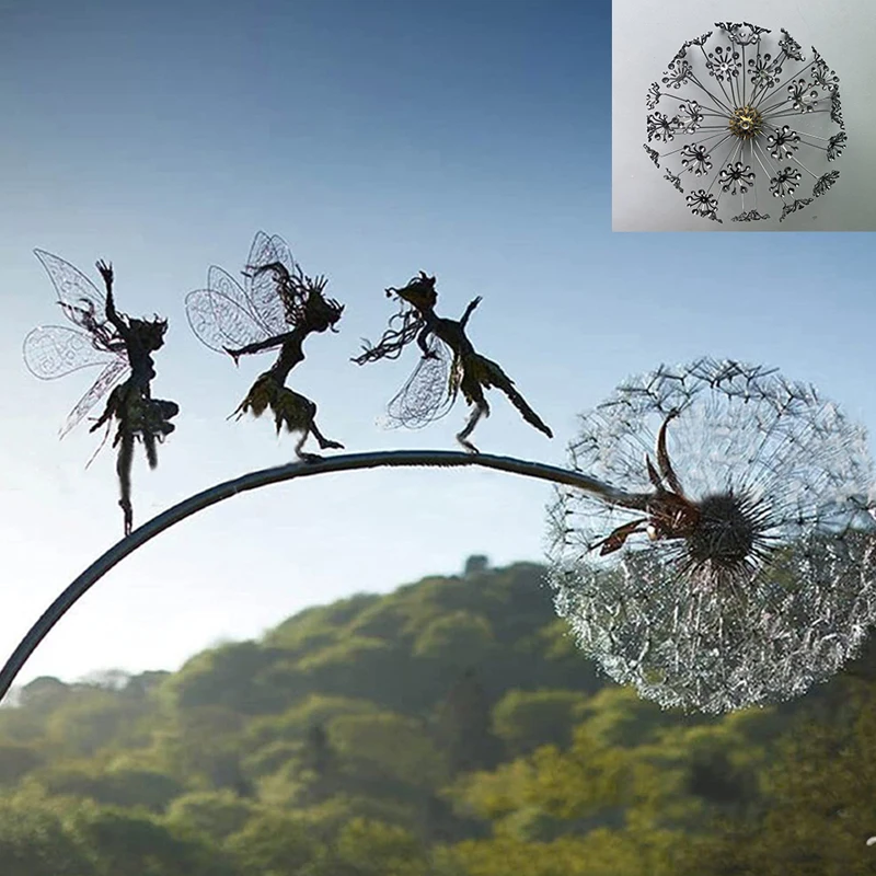 Миниатюрные садовые сказочные Феи Pixies Yard Декоративная скульптура мифическая садовая Статуэтка одуванчика Танцующая сказочная статуя из стальных проводов фея