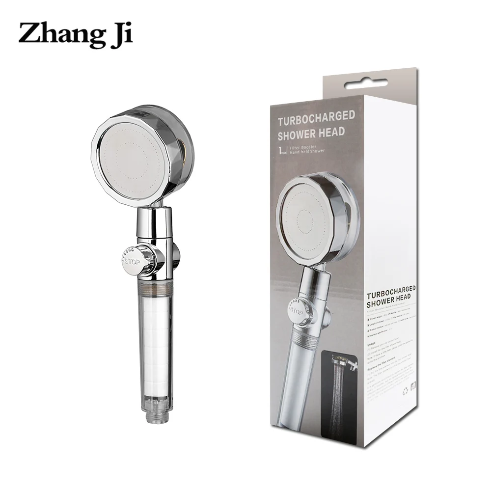 ZhangJi водосберегающая душевая головка с хлопковым фильтром кнопка остановки в красочной коробке маленький вентилятор Волшебная Лейка Форсунка для ванной