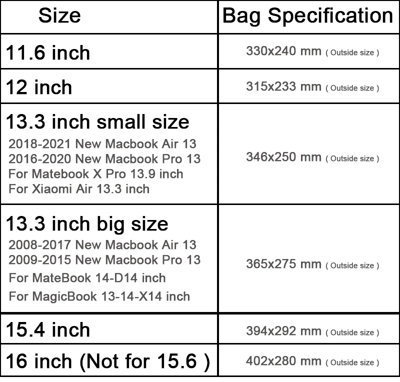 ● Эта сумка не подходит для ноутбуков с Корпусами для ноутбуков или (игровых ноутбуков) толщиной. Подходит для Ультратонких ноутбуков. ● 13 дюймовая сумка имеет две различные характеристики, пожалуйста, подтвердите свою модель перед покупкой. ●Если модель вашего ноутбука не указана в «вариантах размеров», пожалуйста, не покупайте по желанию, пожалуйста, свяжитесь со мной перед покупкой.● Если вы получили сумку и поместили ее в ноутбук, есть еще некоторое пространство, пожалуйста, примите это во внимание (у многих ноутбуков разные характеристики, и сумка не может идеально подойти ко всем ноутбукам). Если вы не можете принять сумку с пространством, пожалуйста, не покупайте ее, чтобы не сделать вашу покупку недовольной.Русские друзья, пожалуйста, обратите внимание! -В связи с новой политикой российской таможни, пожалуйста, заполните полное имя получателя и правильный номер телефона. Если клиент не предоставляет полное имя или знаки перед номером телефона, любые недоставленные товары не будут нести ответственность. В заказе достаточно информации. Спасибо за сотрудничество.