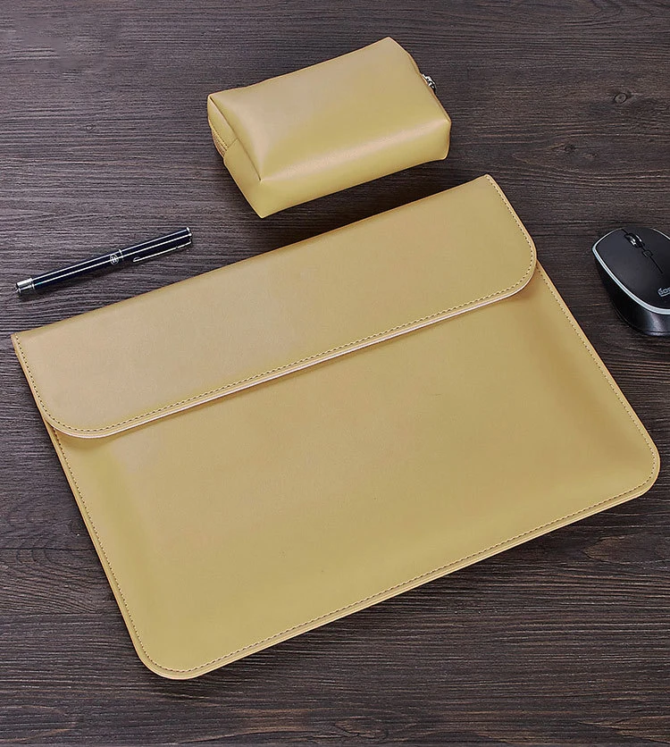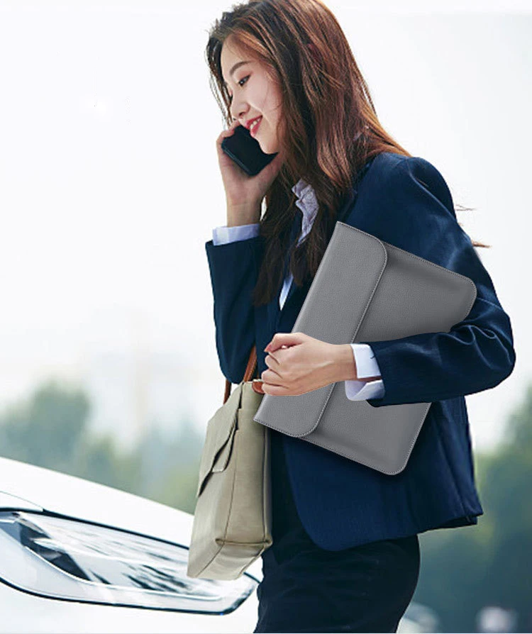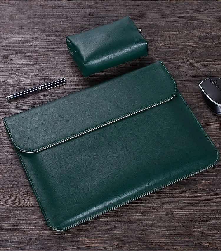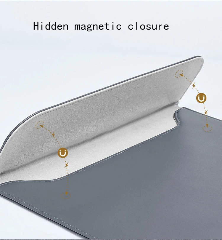 ●Кожаный материал, гладкий и удобный на ощупь.●Крышка закрыта двумя скрытыми магнитными пряжками, которые просты в использовании, просты и элегантны.●Очень тонкая работа и аккуратная прошивка автомобиля.●Удобный внутренний пух для лучшей защиты ноутбука.●При использовании ноутбука сумка для ноутбука выступает в качестве коврика для мыши. Два использования в одном пакете.●Сумка для хранения энергии. Может держать мышь, шнур питания, наушники и другие мелкие предметы. Организовать более легко.