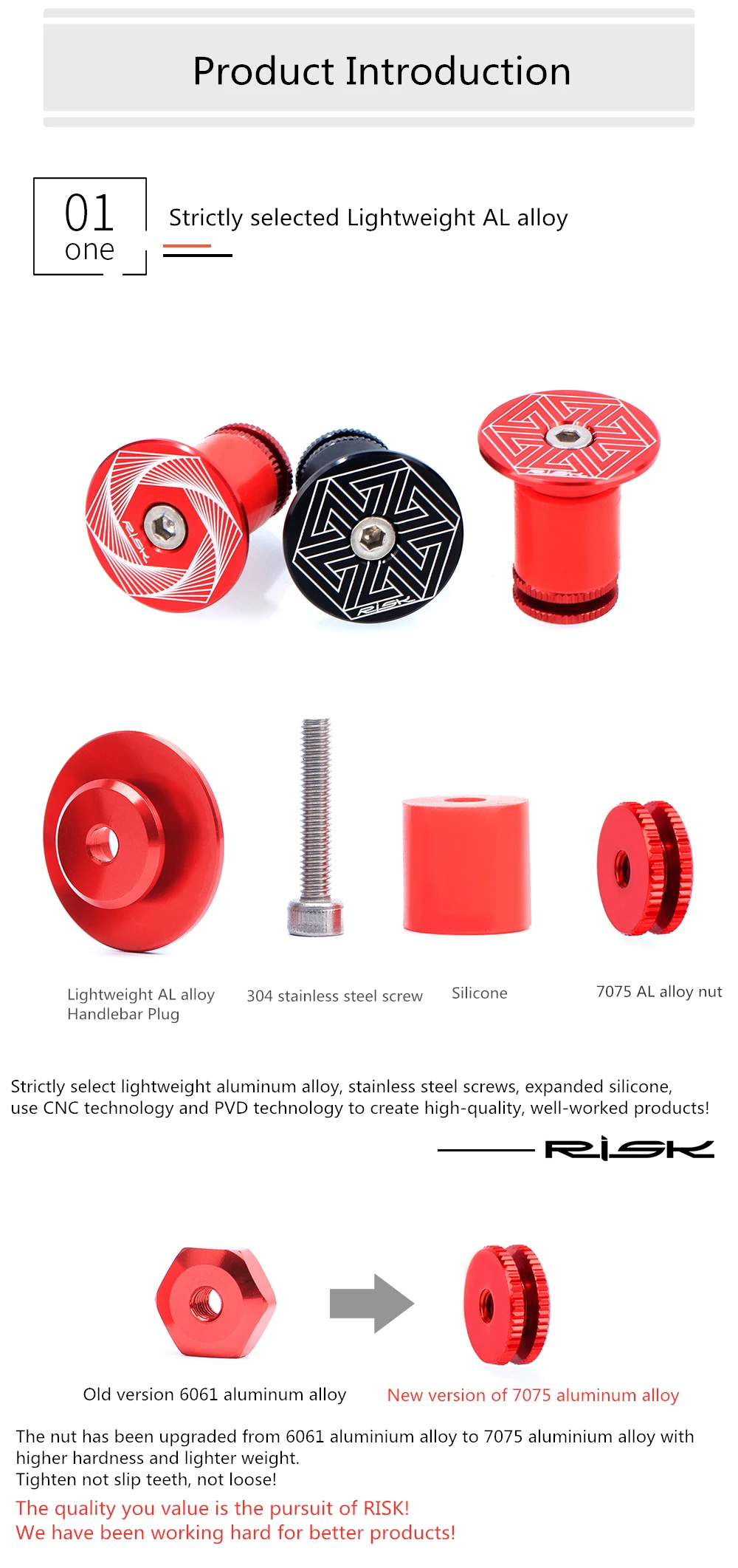 Строго отобранный легкий сплав ALЛегкая заглушка для руля из сплава AL304 винт из нержавеющей сталиСиликон7075 гайка из алюминиевого сплаваСтрого выберите легкий алюминиевый сплав, винты из нержавеющей стали, расширенный силикон, Используйте технологию CNC и технологию PVD для создания высококачественных и хорошо обработанных продуктов!Старая версия 6061 алюминиевого сплаваНовая версия 7075 алюминиевого сплаваГайка была модернизирована от 6061 алюминиевого сплава до 7075 алюминиевого сплава с более высокой твердостью и более легким весом.Затяните не скользящие зубы, не свободные!Качество, которое вы цените-это стремление к риску!Мы усердно работаем для лучшей продукции!