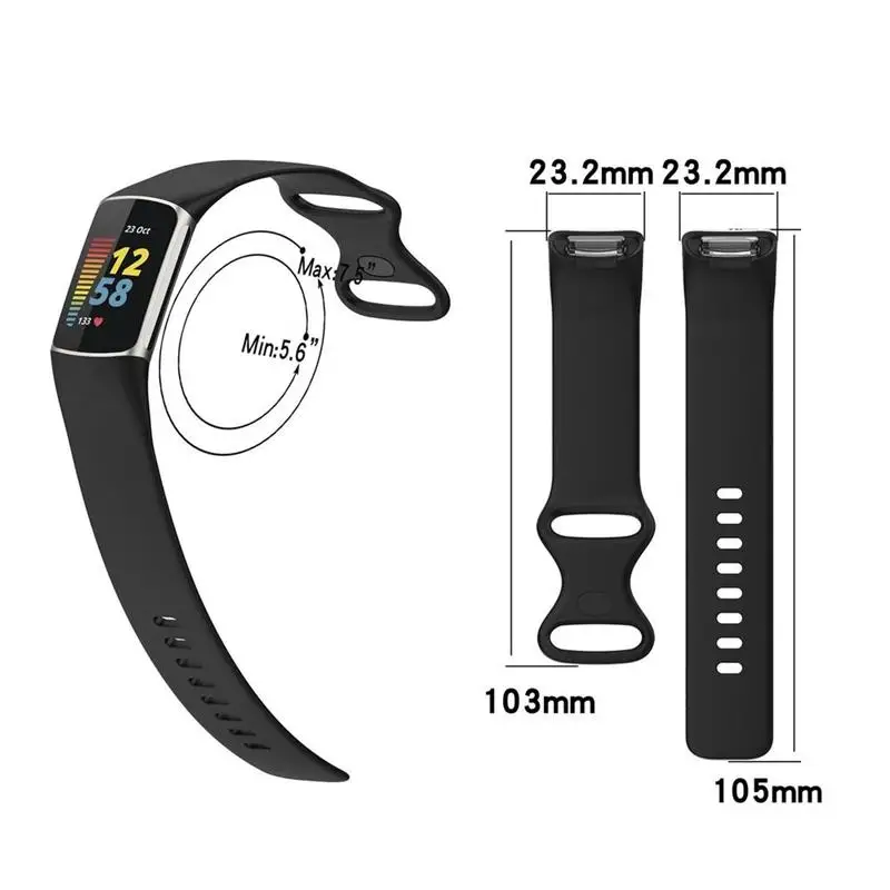 Материал: ТПУ Размеры(Приблизительно): S: (с одной стороны) длина: 103 мм/4,05 дюйма, (с одной стороны) Длина: 105 мм/4,13 дюйма, ширина: 23,2 мм/0,91 дюйма, подходящая окружность запястья: (Min: 5,6 "-Макс: 7,5") L: (с одной стороны) длина: 103 мм/4,05 дюйма, (с одной стороны) Длина: 145 мм/5,70 дюйма, ширина: 23,2 мм/0,91 дюйма, подходящая окружность запястья: (Мин: 7,0 "-Макс: 8,9") Цвет: Белый, черный, оранжевый, розовый, красный, серый, хризантема синий, хаки, темно-синий, светильник фиолетовый Подходящие модели: Совместимость с смарт-браслетом Fitbit Charge 5