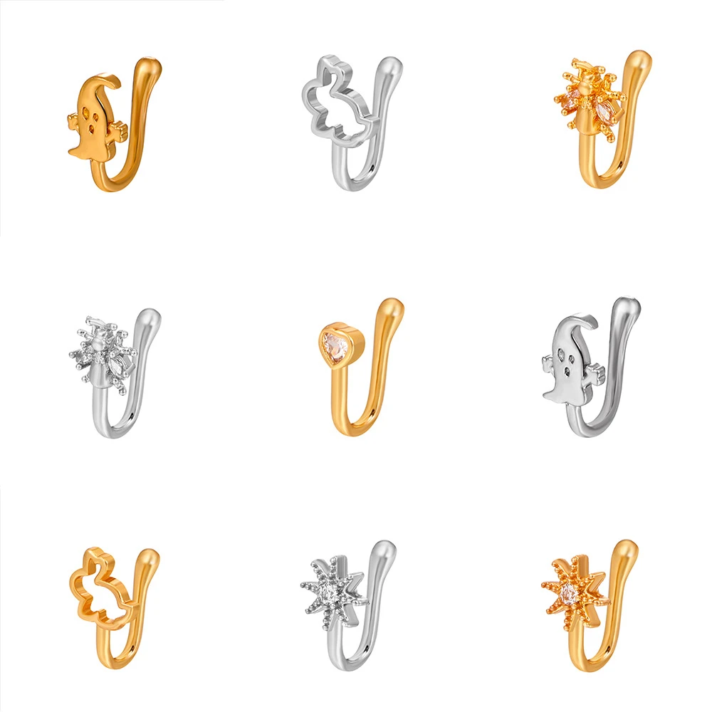Поддельные Пирсинг нос кольцо Сердце Звезда Корона Лягушка Кролик Т...