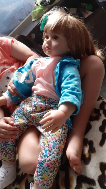 Кукла в целом понравилась. Только не сидит так, как показано на картинке, заваливается назад, потому что мягконабивная. Одежда хорошего качества. Волосы жестковаты, наверное, будут путаться, главное, чтоб не лезли. Пришла быстрее, чем было заявлено. Вопрос: можно ли на алиэкспресс найти на неё одежду и обувь? хотя одежду можно брать как на младенца, а вот обувь такую маленькую не найти