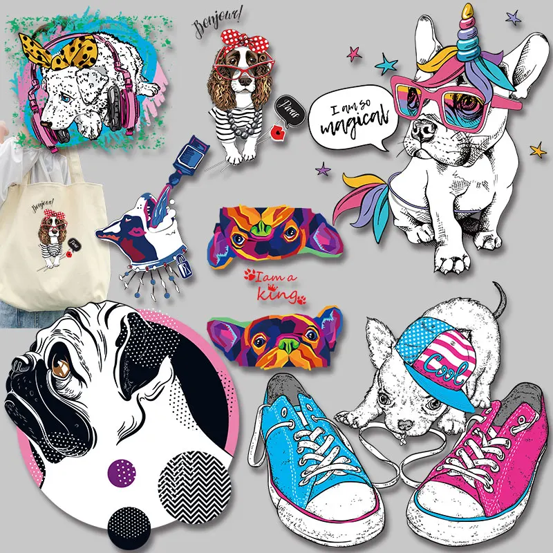 Цветные наклейки для глажки животных в виде собаки, единорога, моющиеся переводные наклейки с помощью утюга для детской одежды, куртки, Аппликации сделай сам