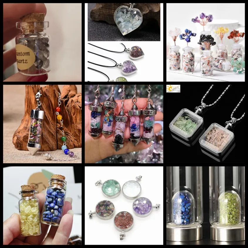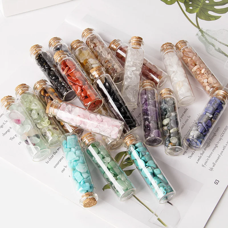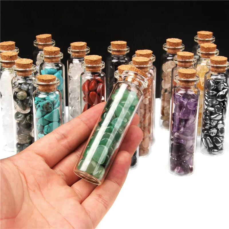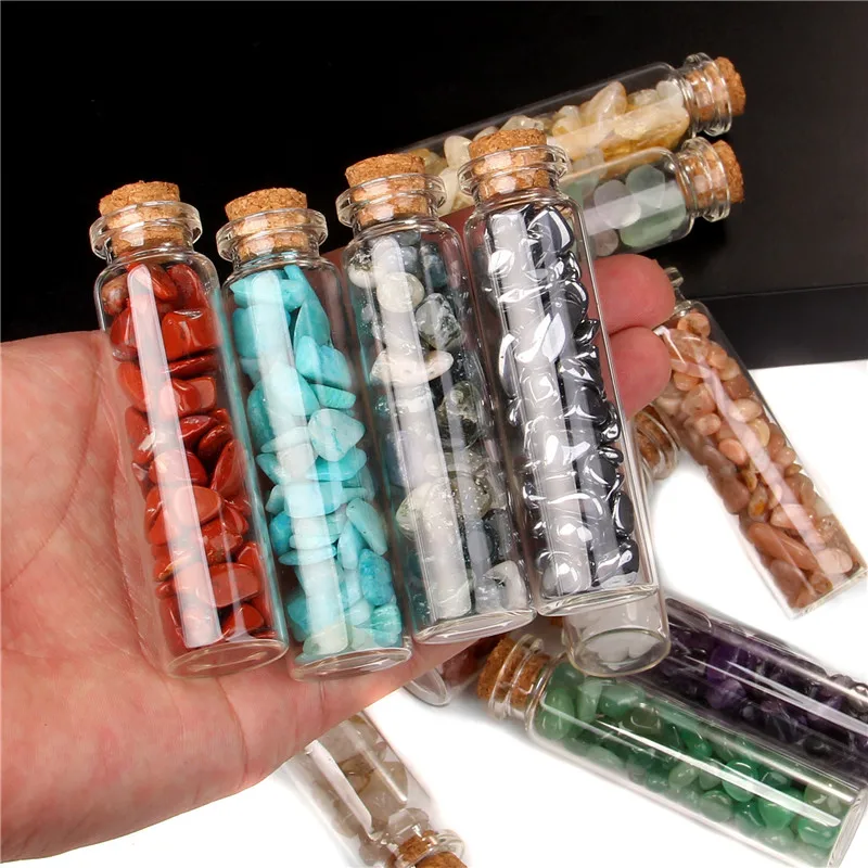 Стеклянная бутылка для желаний из натурального хрусталя и камня, 21 вид, восстанавливающая бутылка на удачу для дрифтинга, украшение для аквариума, гравий, подарок