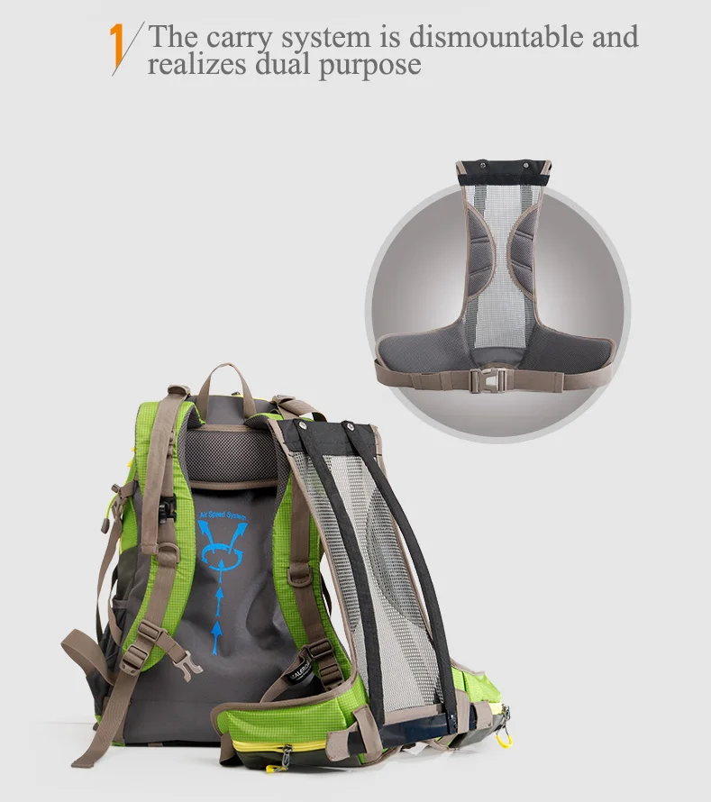 3. Система подшипников съемная, эта система подшипников может обрабатывать вес упаковки и распределять нагрузку на тело в другом положении и держать вашу спину от пота, чтобы защитить вас назад и плечо, Вы не будете чувствовать себя очень уставшим при тяжелом весе и долгой поездке, но эта система подшипников будет занимать некоторые области рюкзака около 10 литров после того, как он был зафиксирован, потому что он имеет систему подвески сетки, если вы отсоедините его, вы увидите его реальную емкость и используйте рюкзак в качестве ежедневного использования или путешествия.