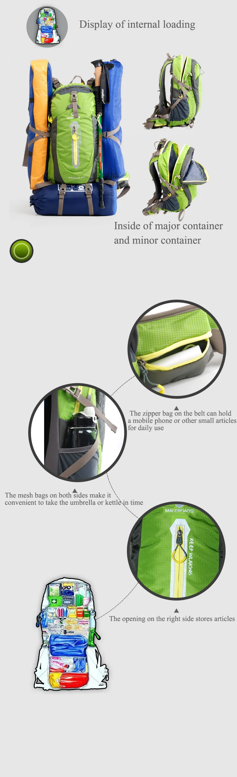 Maleroads походный рюкзак для кемпинга, спортивная сумка для путешествий на открытом воздухе, рюкзак для альпинизма, экипировка для мужчин t 40 50L для мужчин и женщин, мужчин и подростков