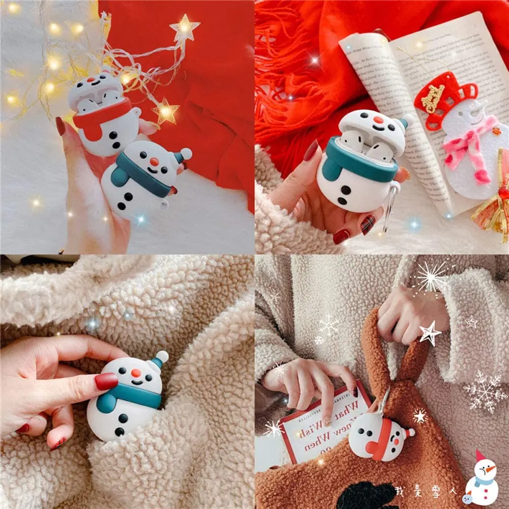 Супер милый 3D шарф Рождественский снеговик для Airpods 2 1 чехол для детей девочек женщин креативный праздничный Мягкий силиконовый чехол для AirPods 2 Чехол
