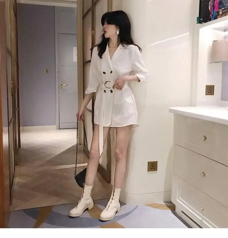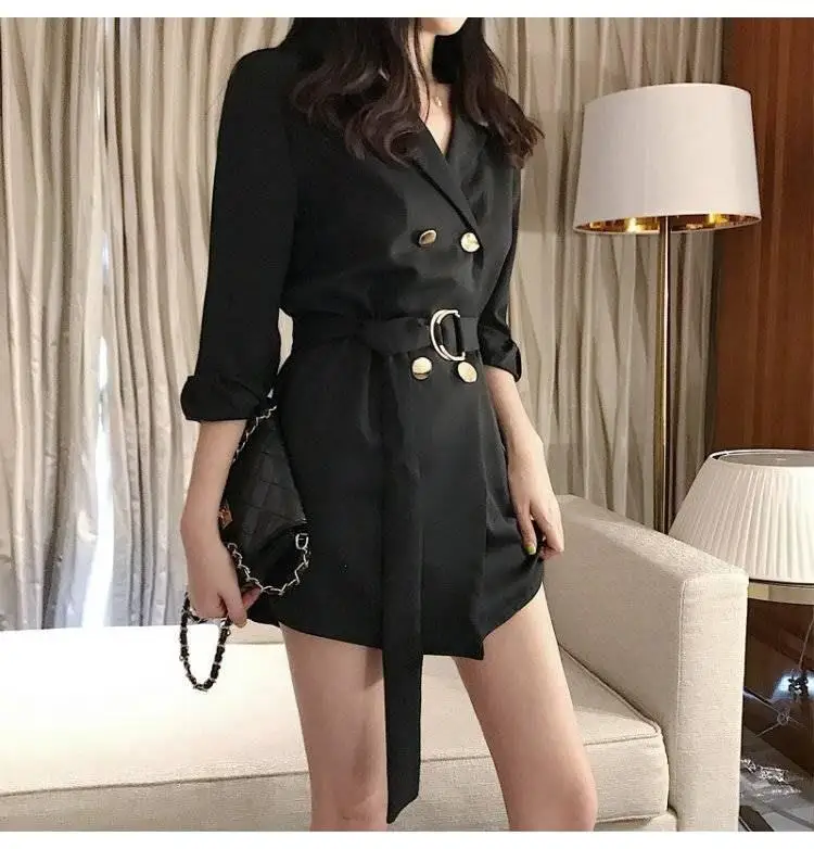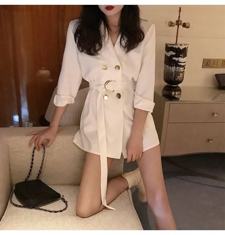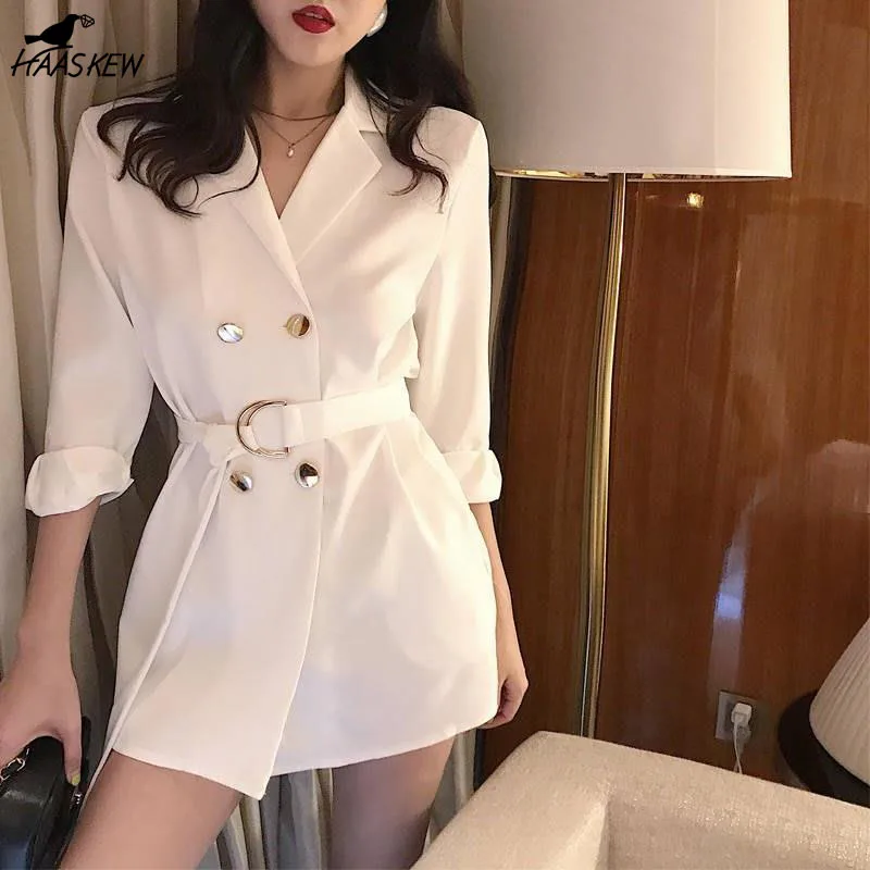 Женский однотонный офисный Блейзер HAASKEW, элегантное двубортное платье-жакет в Корейском стиле Харадзюку, весна-осень