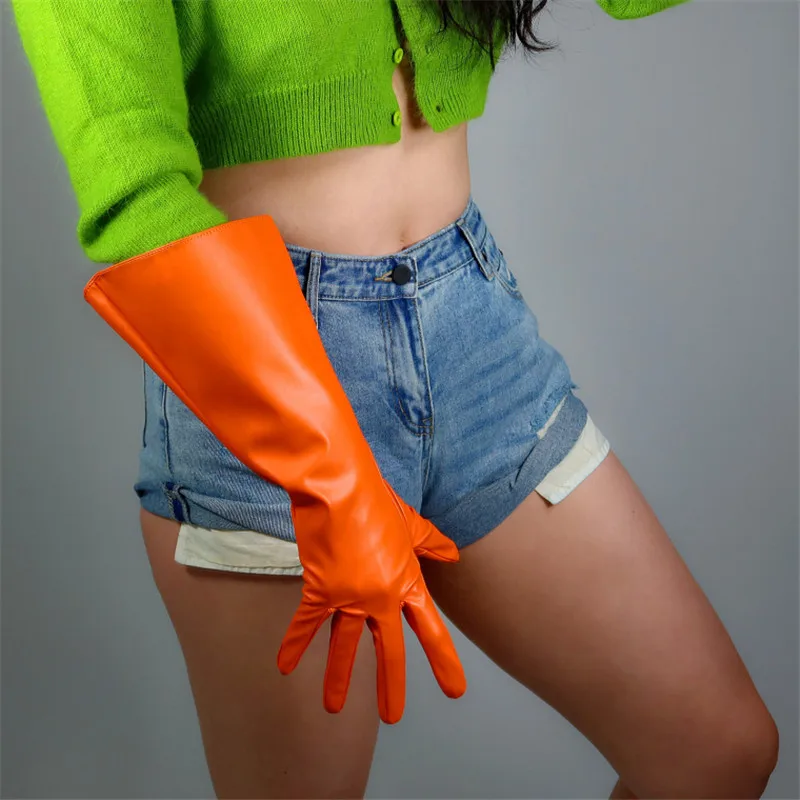 Экстра длинные кожаные перчатки 70 см Искусственная кожа овчины све...