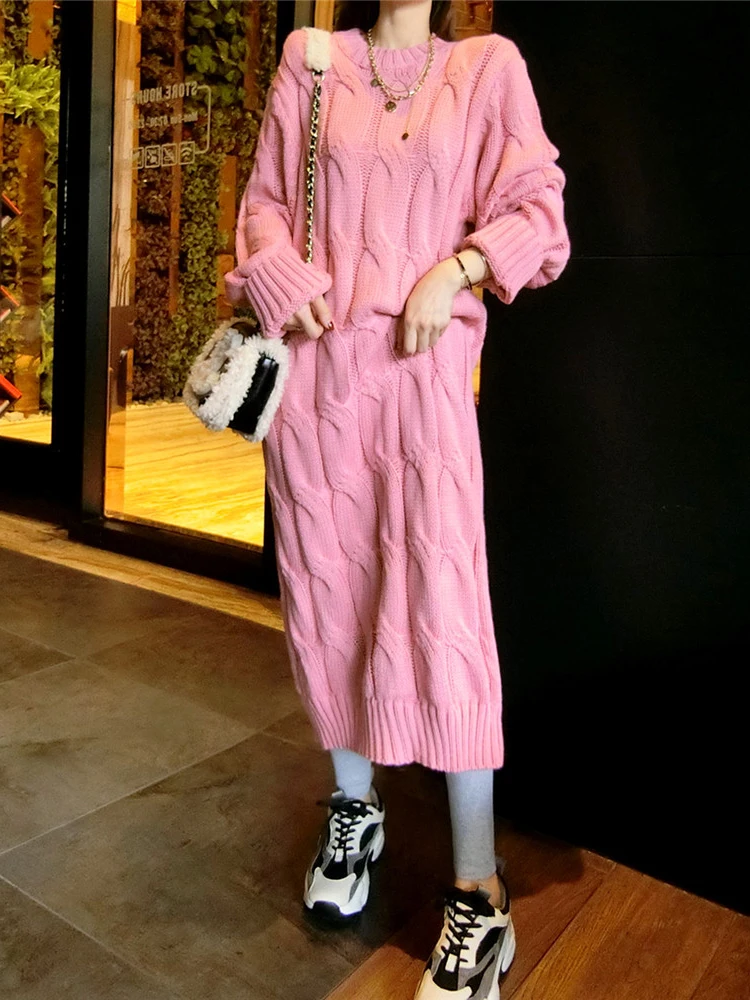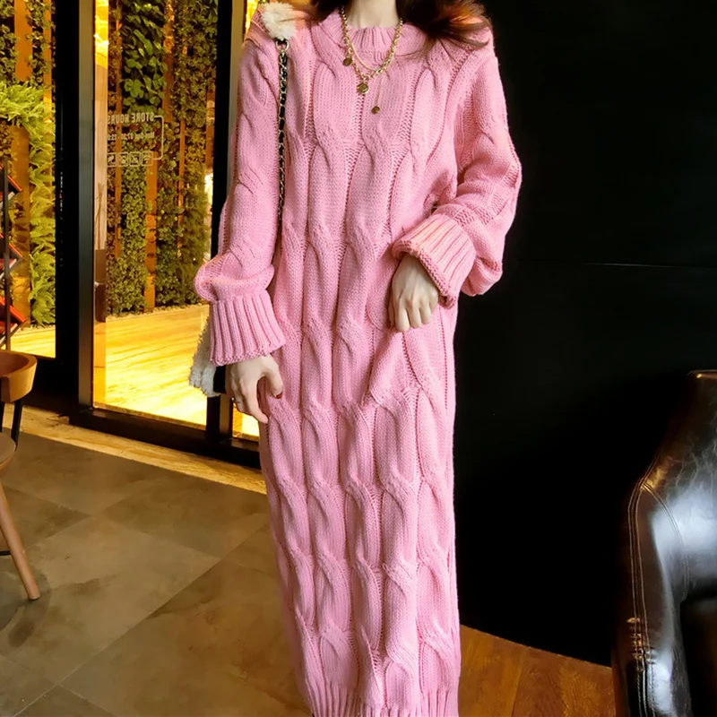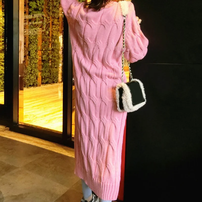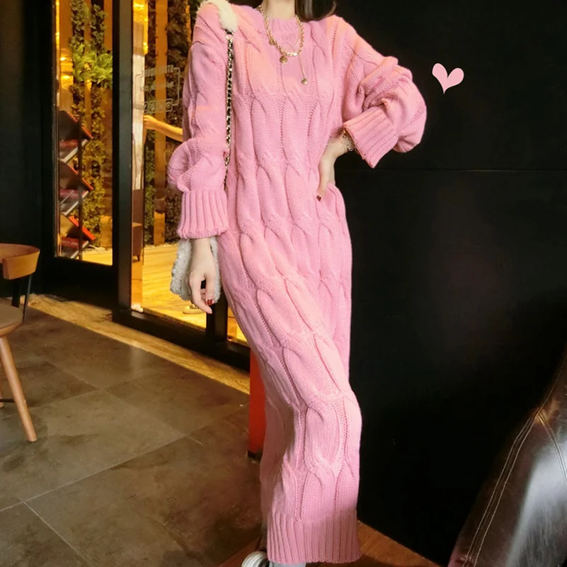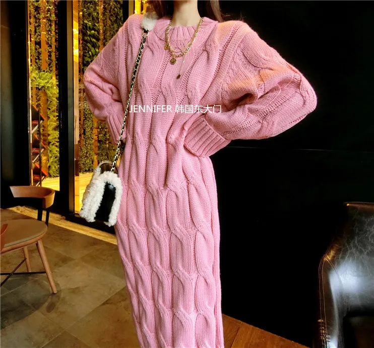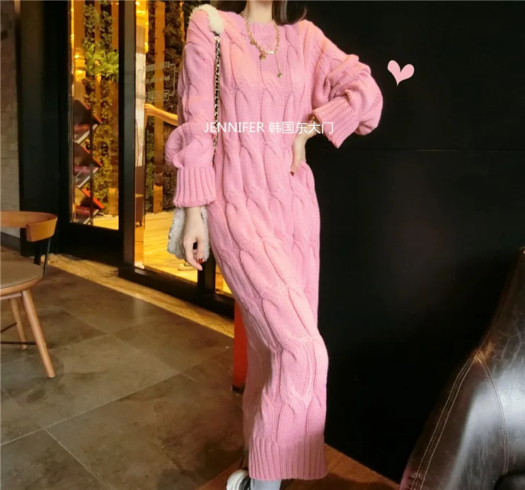 Женское трикотажное платье-свитер, шерстяное платье макси в Корейск...