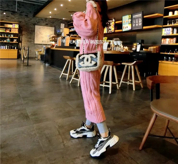 Корейский модный шикарный осенне-зимний вязаный свободный утепленны...