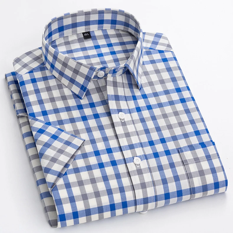 Мужская Повседневная рубашка в клетку, голубая Удобная рубашка с короткими рукавами, из 100% хлопка, не требует особого ухода