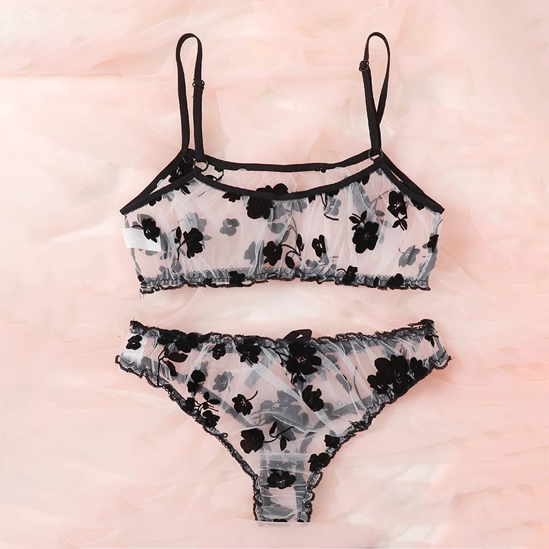 Комплект женского нижнего белья с цветочной вышивкой и бюстгальтером