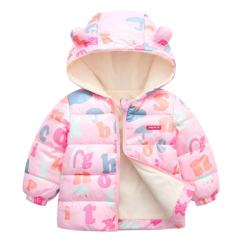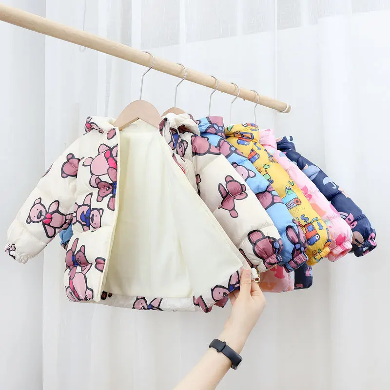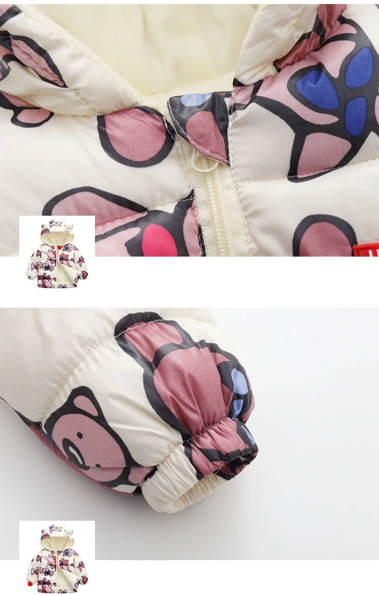 Детская зимняя куртка с капюшоном, с мультяшным медведем