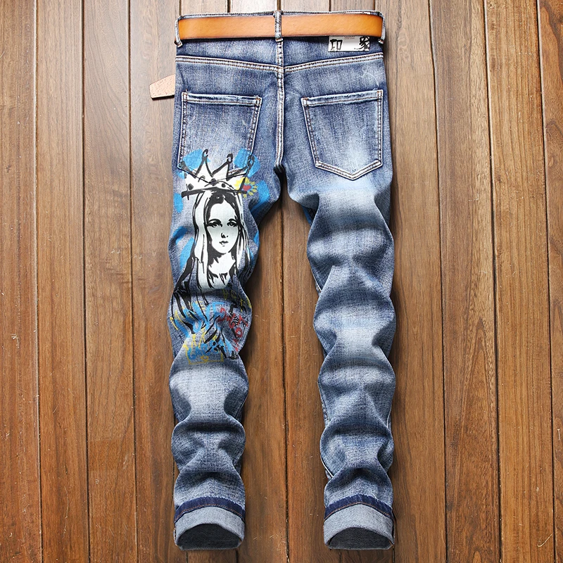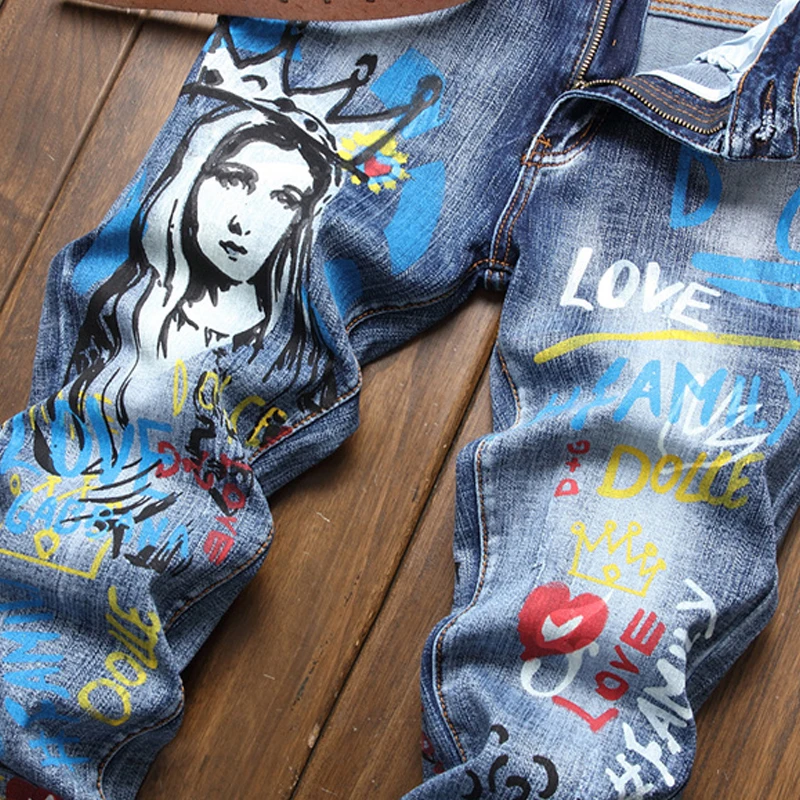 Джинсы для мужчин, модные облегающие джинсовые брюки, байкерские высококачественные мужские прямые повседневные дизайнерские удобные современные модные с принтом
