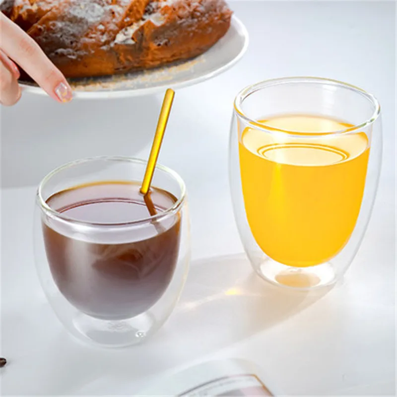 6 шт. двухслойная стеклянная Изолированная кружка для молока, кофе, термостойкая кружка для здоровых напитков, чая, прозрачная посуда для напитков