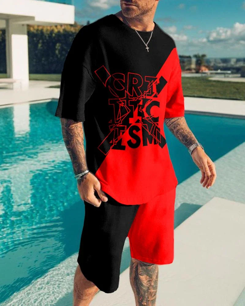 Мужской спортивный костюм, футболка и шорты, комплект одежды для тренировок из 2 предметов, однотонная спортивная одежда с короткими рукавами и 3D-принтом в виде букв неба