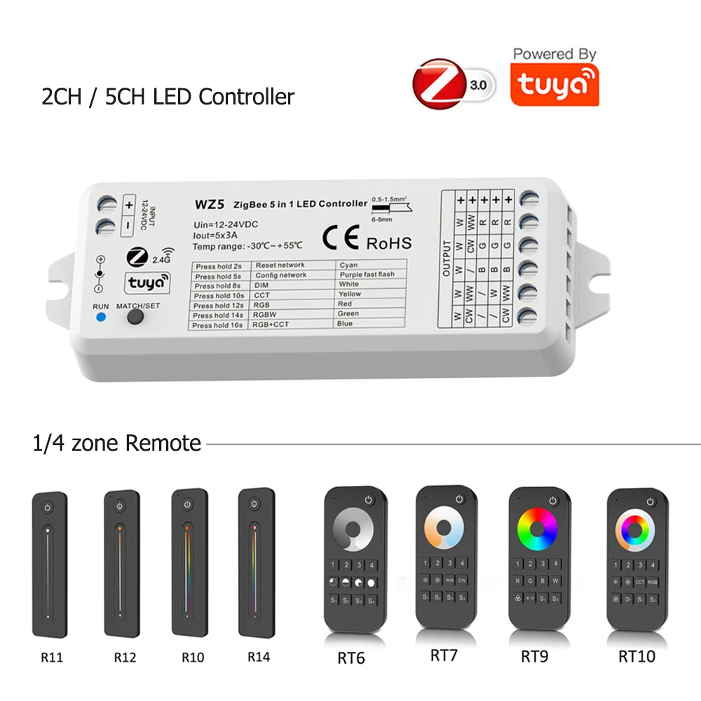 Умный радиочастотный светодиодный пульт управления Zigbee Tuya, 12 В, 24 В, полоска DimCCTRGBRGBWRGBCCT, 2,4 ГГц, беспроводной пульт дистанционного управления Google Home, голосовое управление