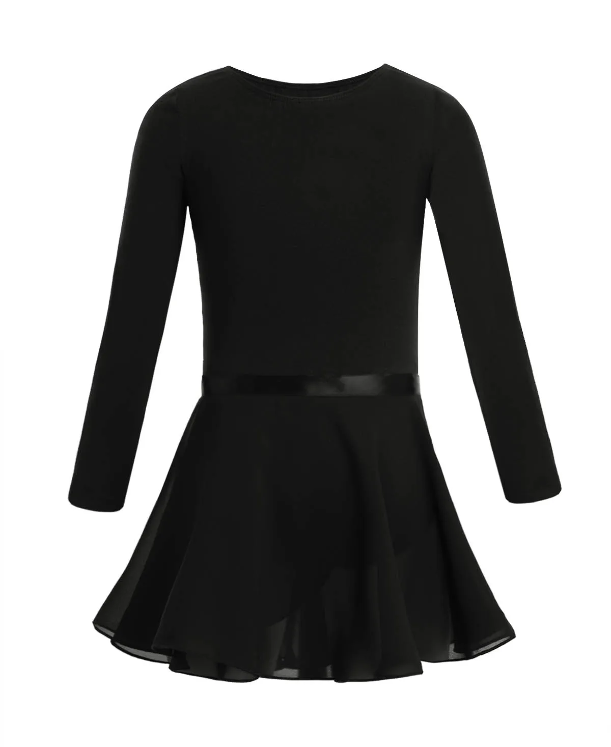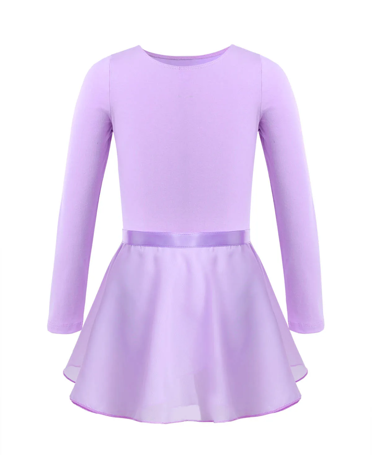 Балетное трико для девочек, Одежда для танцев, хлопковая одежда с длинными рукавами, комплект из шифоновой юбки с завязками для балерины и гимнастики, одежда для балерины