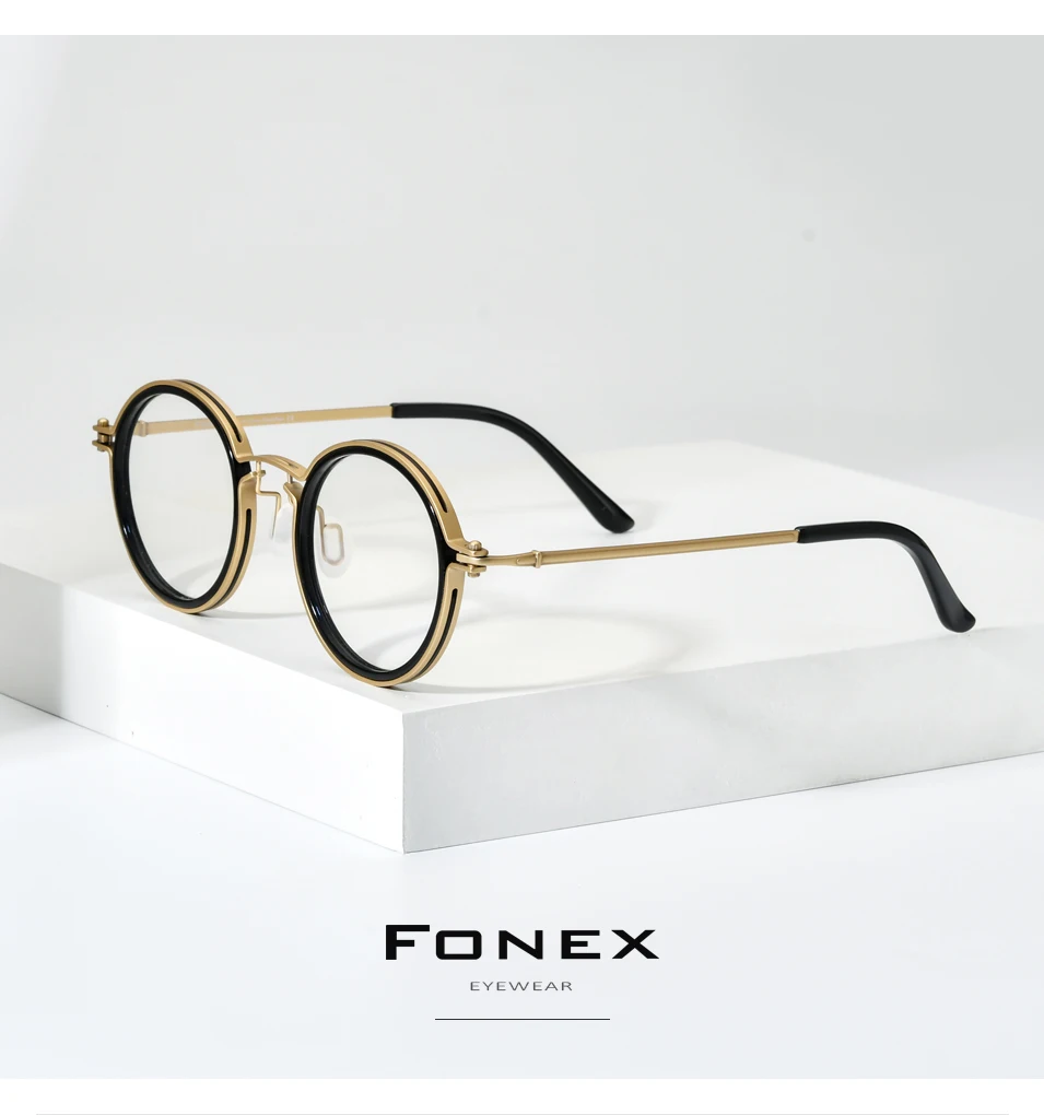 FONEX Оправа из чистого титана для очков, винтажная круглая оправа ...
