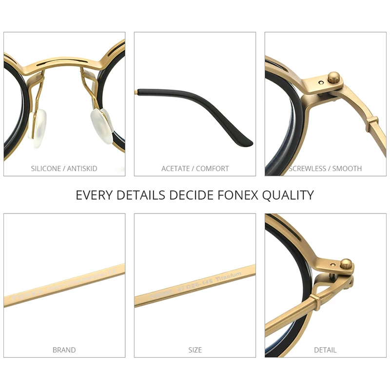 FONEX Мужские и женские оправы для очков из чистого титана, ретро к...