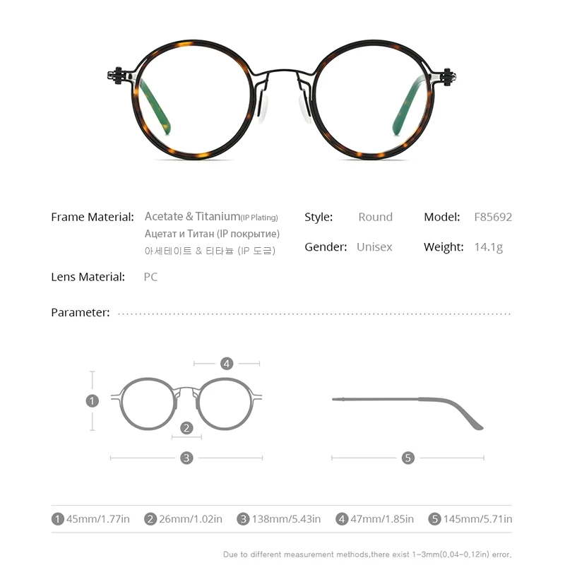 FONEX Мужская и женская круглая оправа, винтажная Ультралегкая опра...