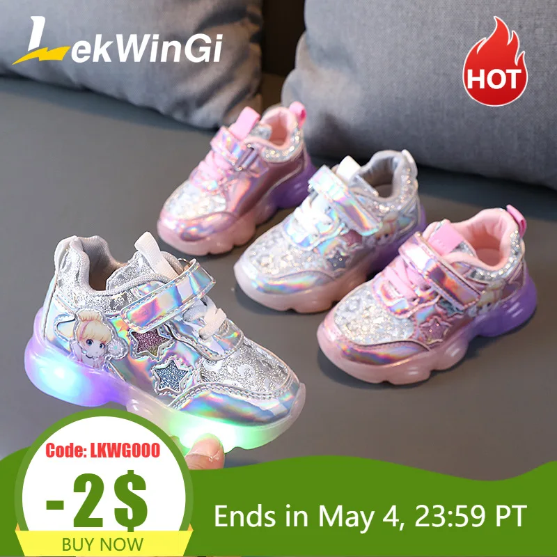 Кроссовки Детские светящиеся, повседневная водонепроницаемая обувь для девочек, размеры 22-30