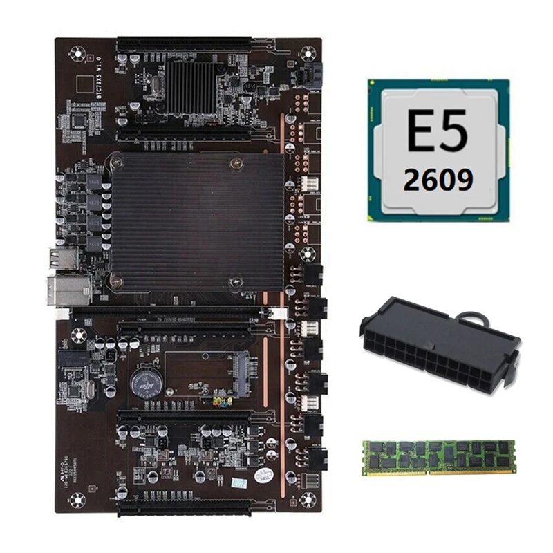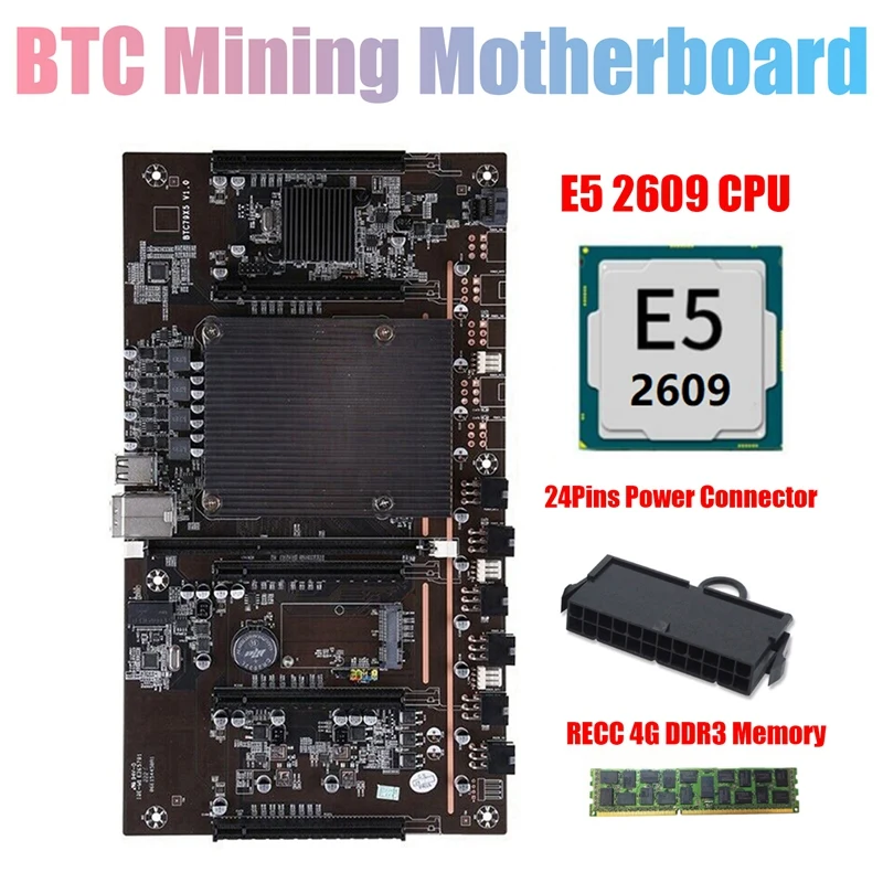 Семейная материнская плата для майнинга BTC с процессором E5 2609 + RECC 4G DDR3 ОЗУ + 24-контактный разъем, поддержка 3060 3070 3080 GPU для майнинга BTC