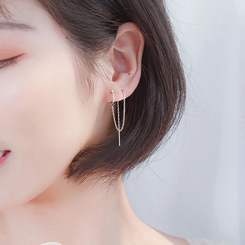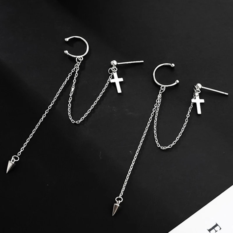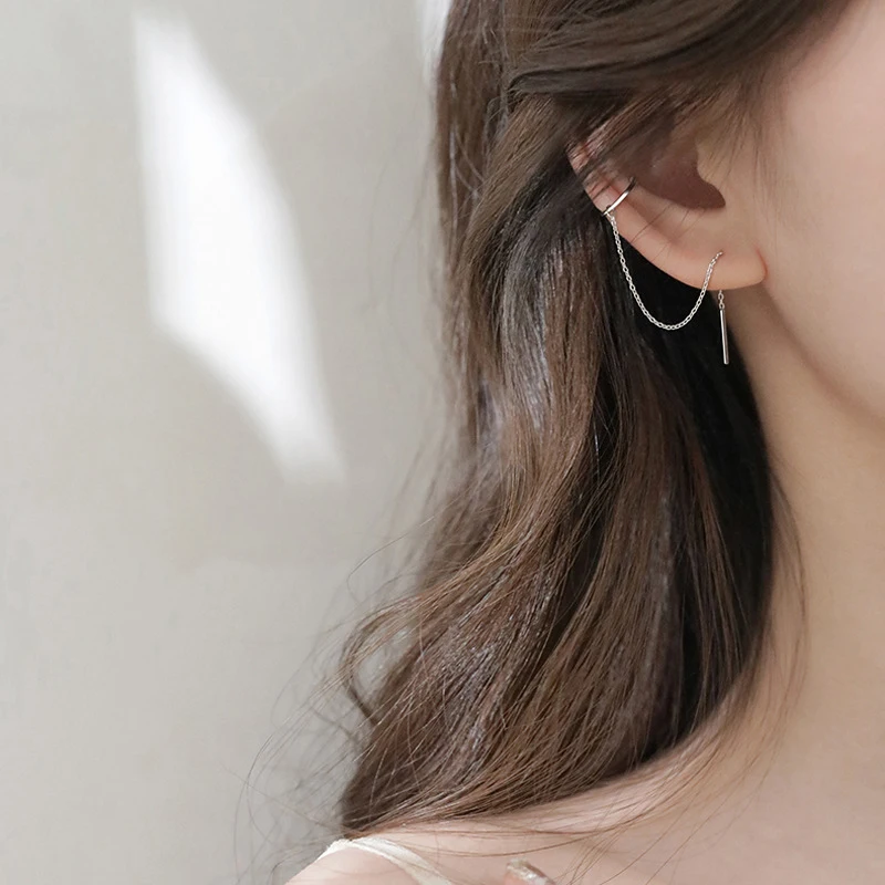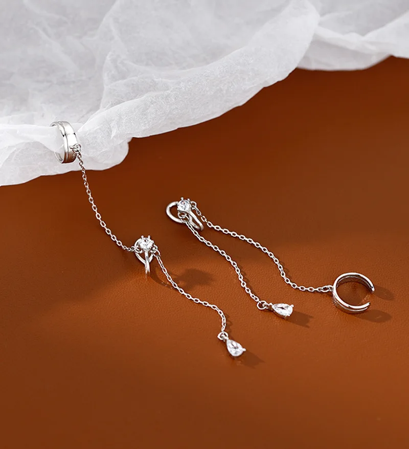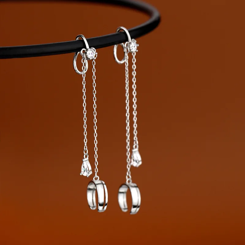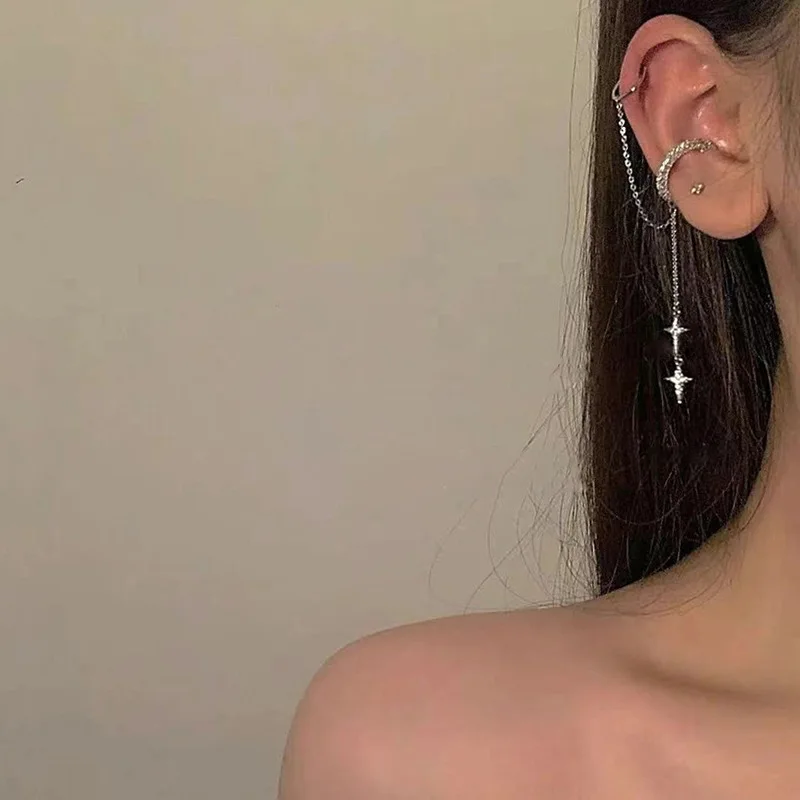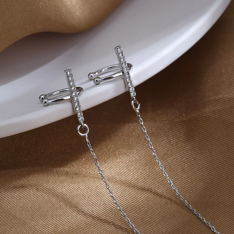 Серьги-цепочки с кристаллами в стиле панк женские, Простые Длинные Ювелирные Украшения Для Пирсинга Ушей с кисточками из циркония, сказочные серьги-каффы, 1 шт., 2022