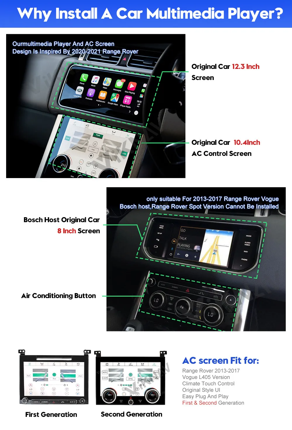 2 Din беспроводной головное устройство автомобиля радио LCD климат-контрольДля Land Range Rover Vogue SVA L405 2013-2017Кондиционер сенсорного экрана