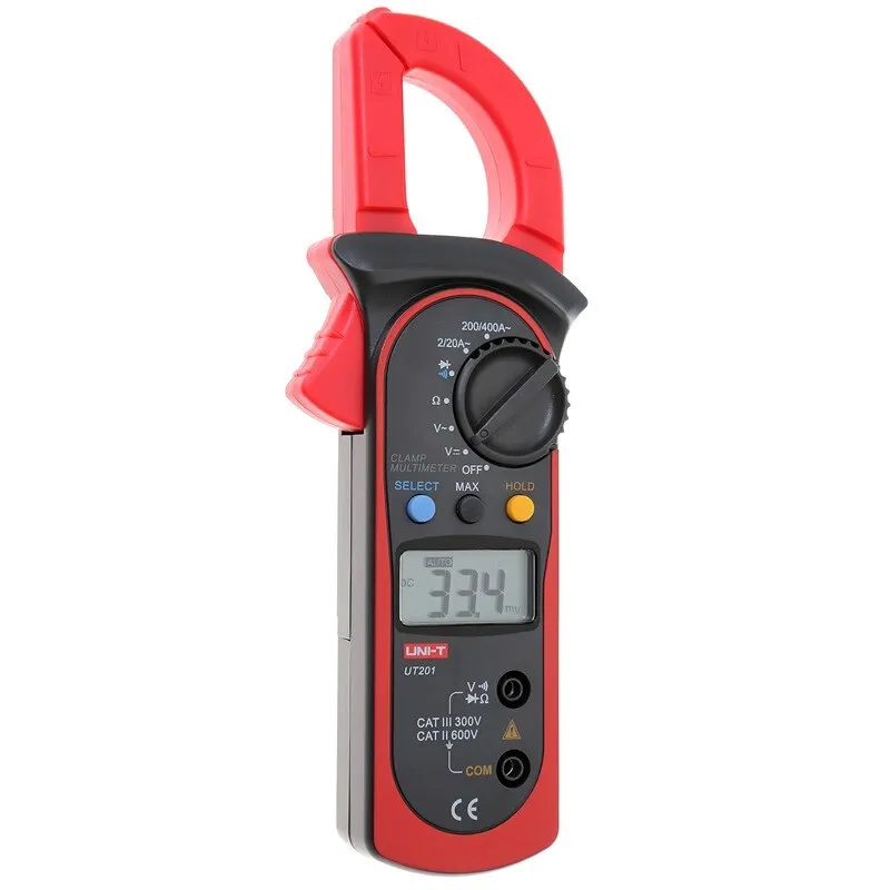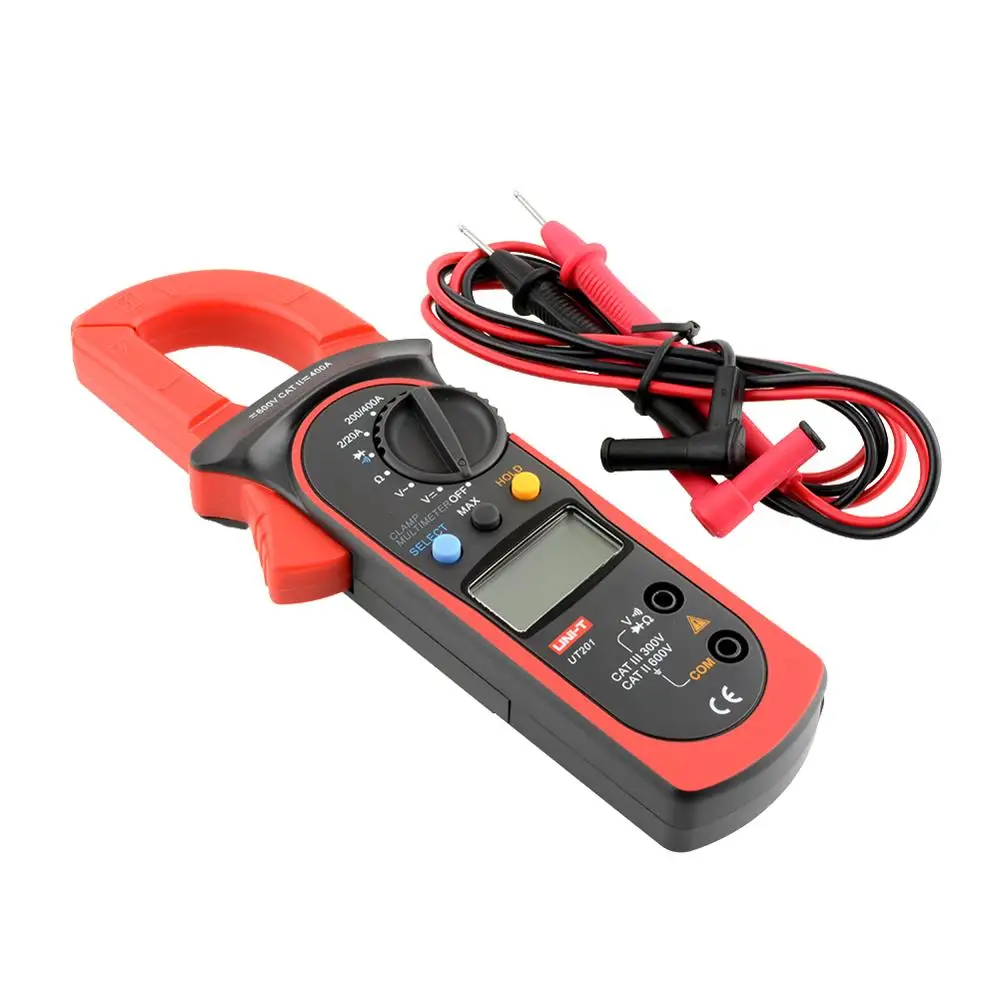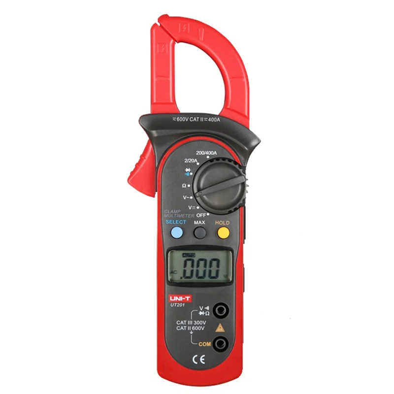 Цифровой измеритель-зажим UNI-T UT201, Измеритель постоянного и переменного тока, напряжения и силы тока, мультиметр с автоматическим выбором диапазона, проверка сопротивления, диодов, ЖК-дисплей с подсветкой
