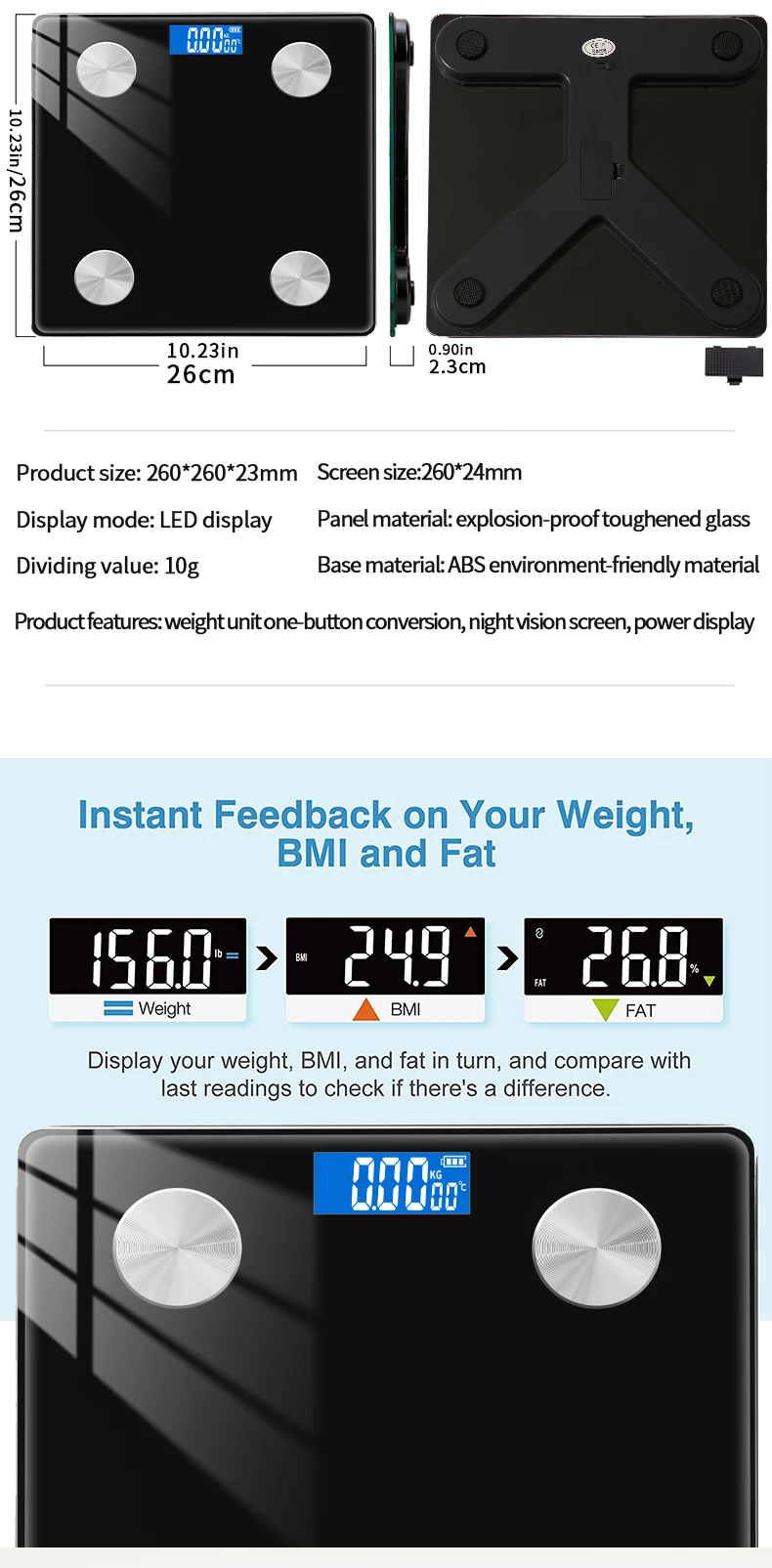 Электронные напольные весы с Bluetooth, умный цифровой прибор для измерения массы тела и жира, с ЖК-дисплеем, анализ состава тела