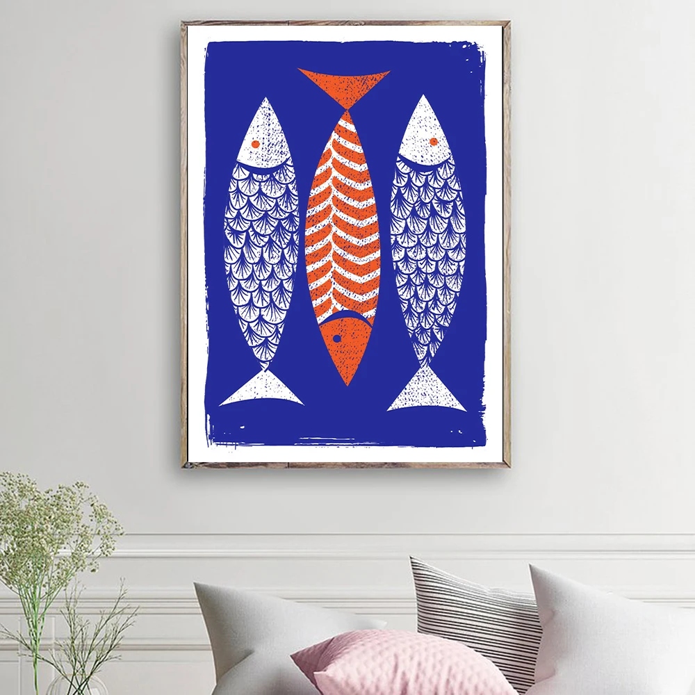 Современное художественное оформление, Настенная картина в скандинавском стиле, искусство, цвет Индиго, шелкография, декор для кухни и дома