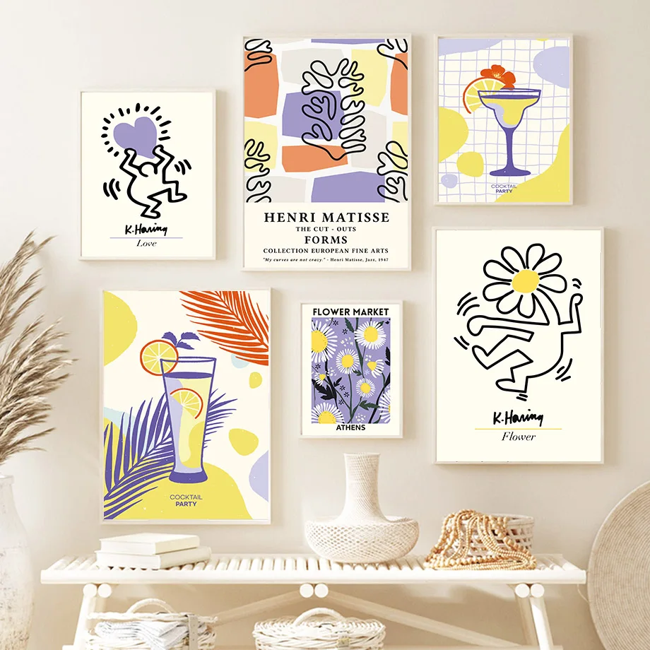 Абстрактные северные постеры Matisse с изображением цветов и коктей...