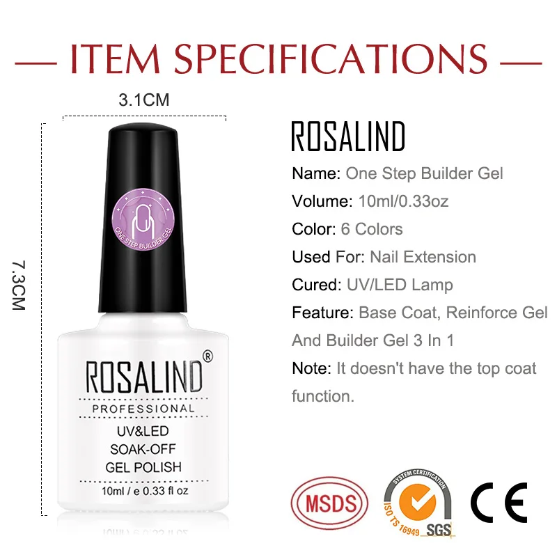 Гель для наращивания ногтей ROSALIND, быстросъемный акриловый гель для наращивания ногтей, прозрачный розовый белый Полупостоянный лак для полигеля для ногтей