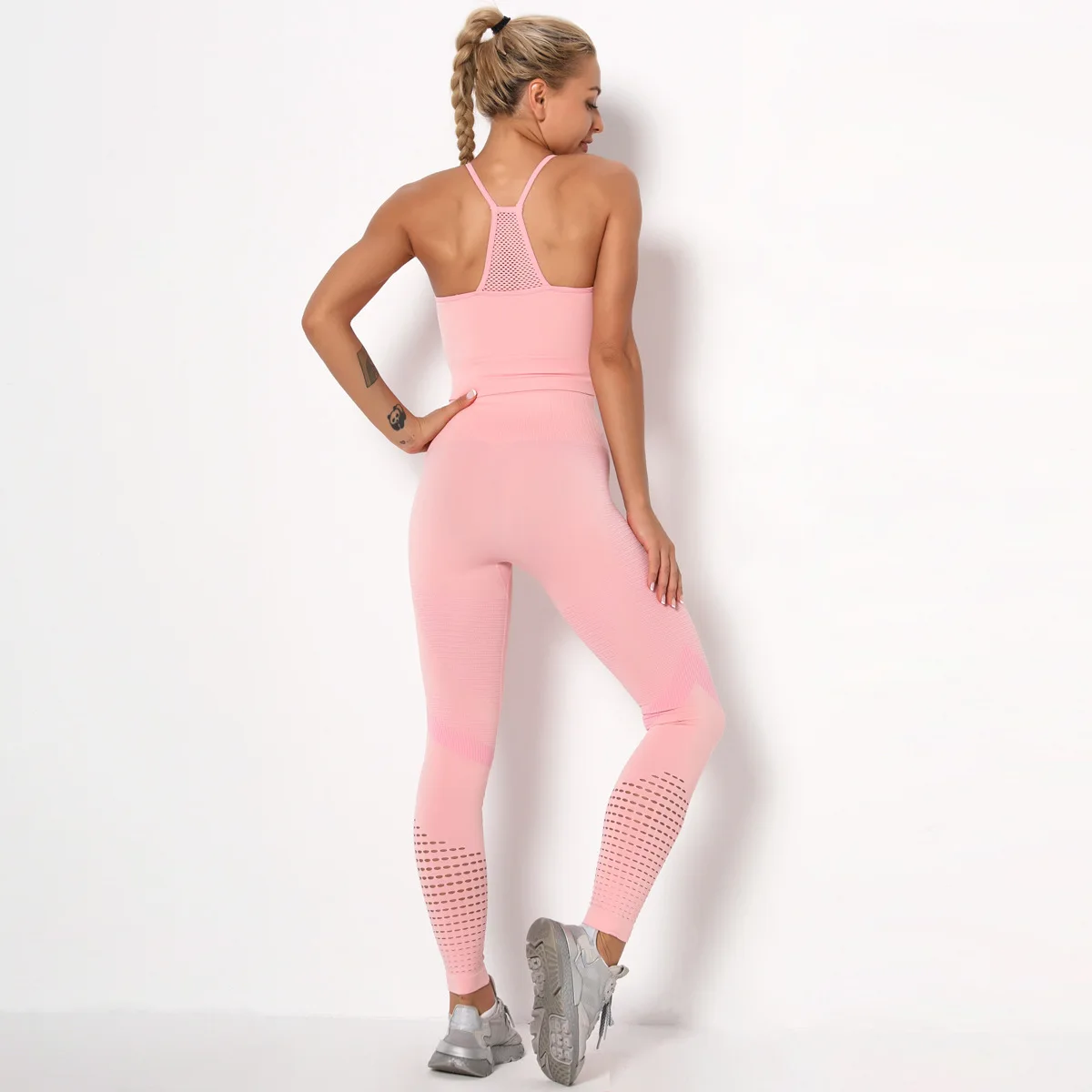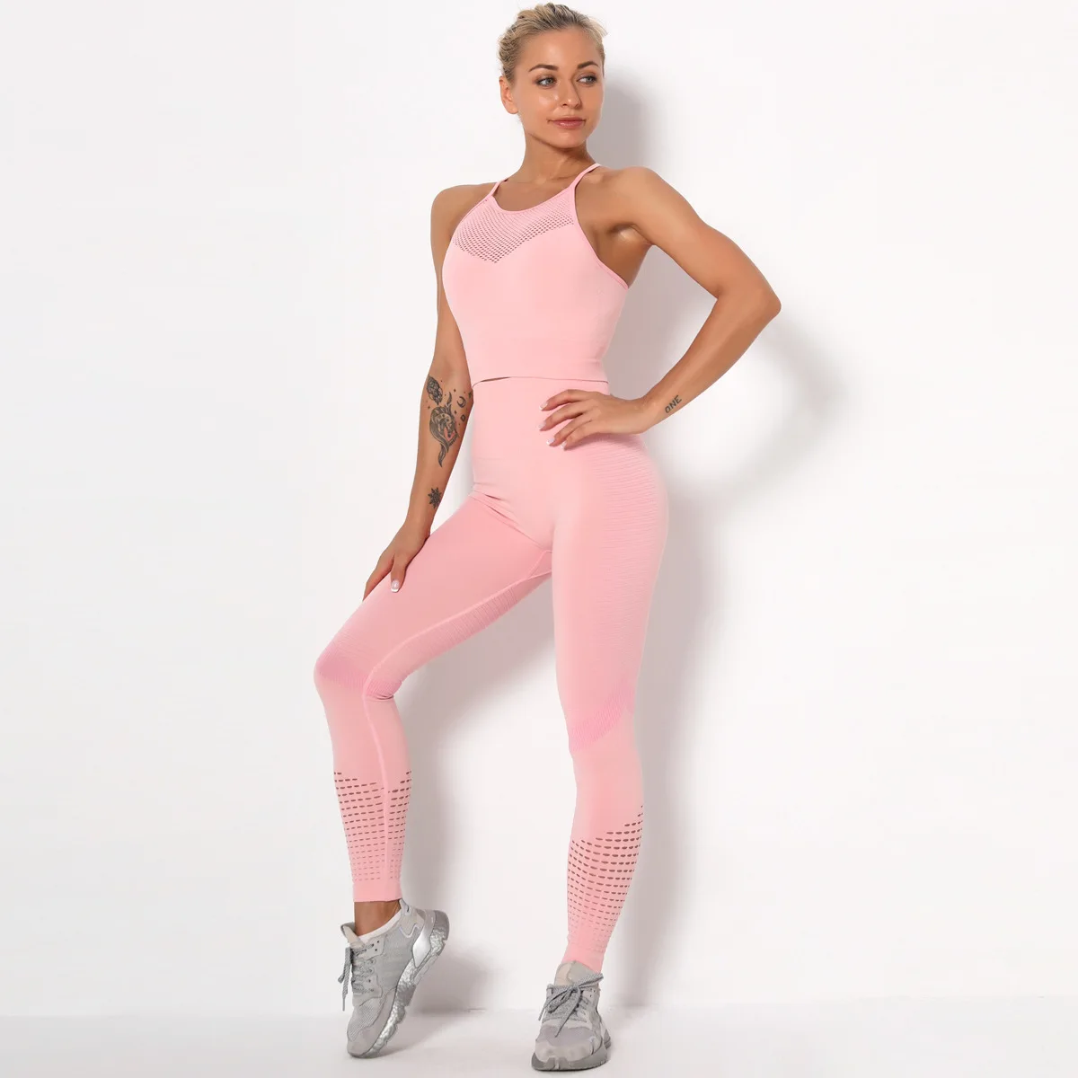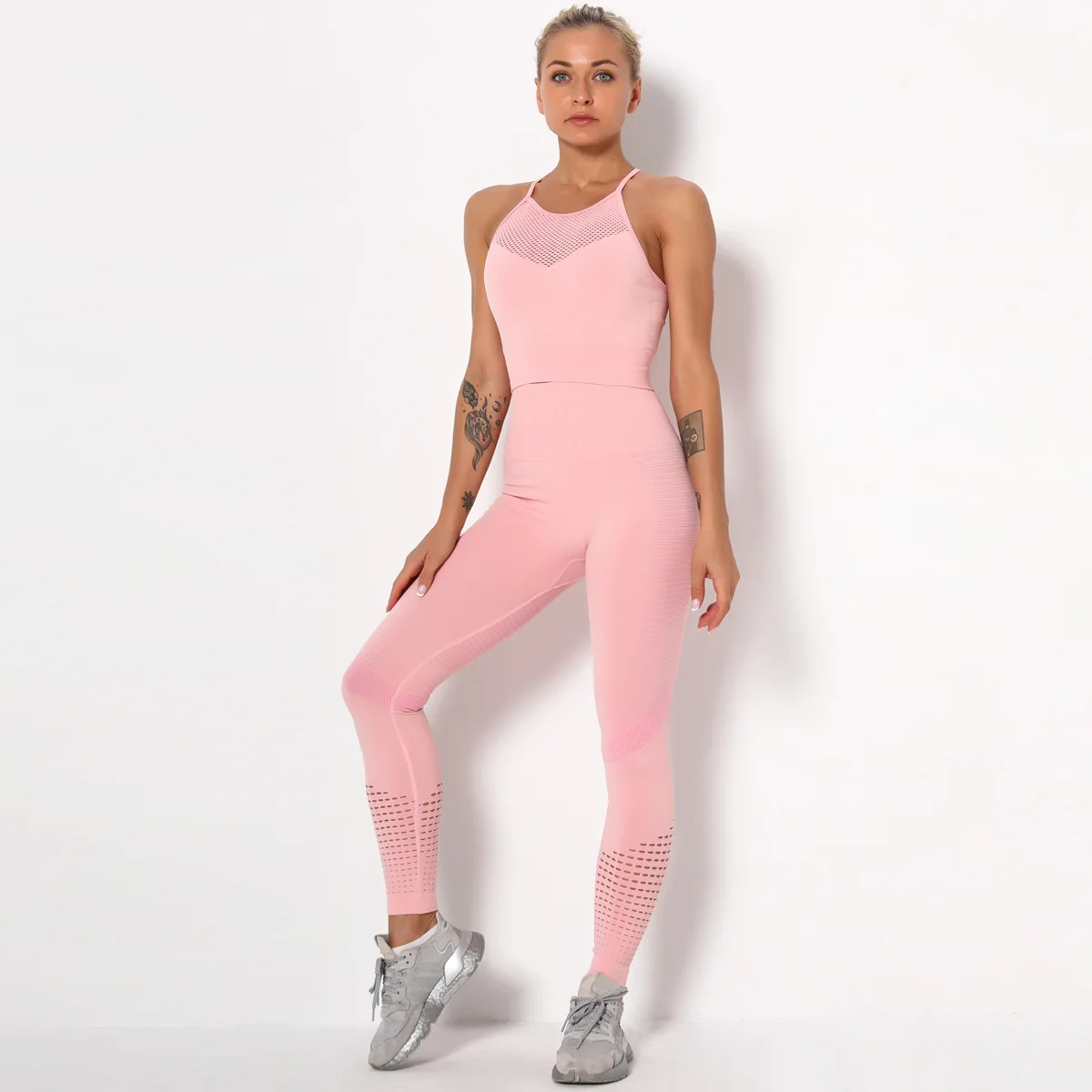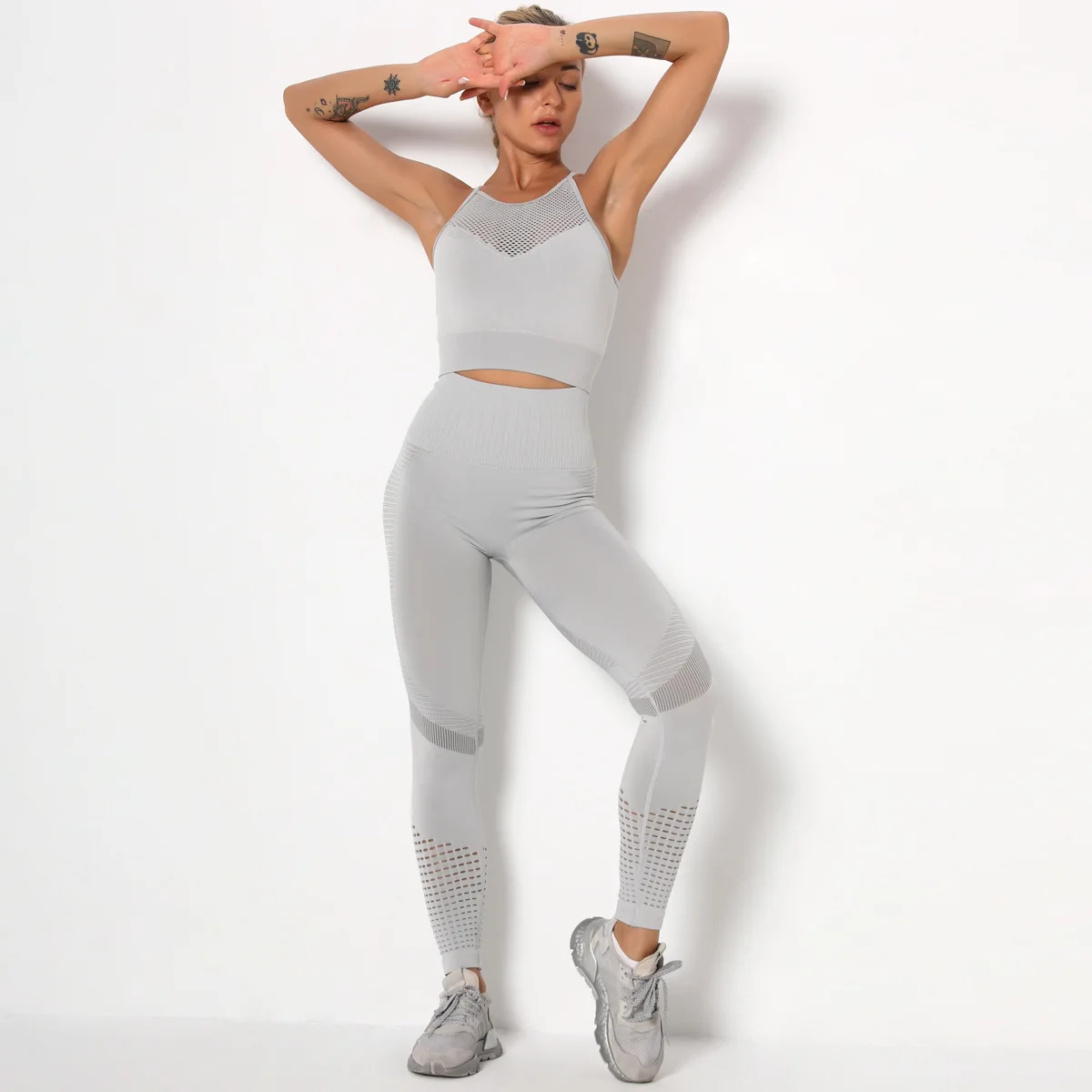 Сетчатый спортивный комплект, женская спортивная одежда, бесшовная одежда для спортзала, комплекты для йоги, бюстгальтер, леггинсы, спортивная одежда для женщин, спортивные костюмы из 2 предметов