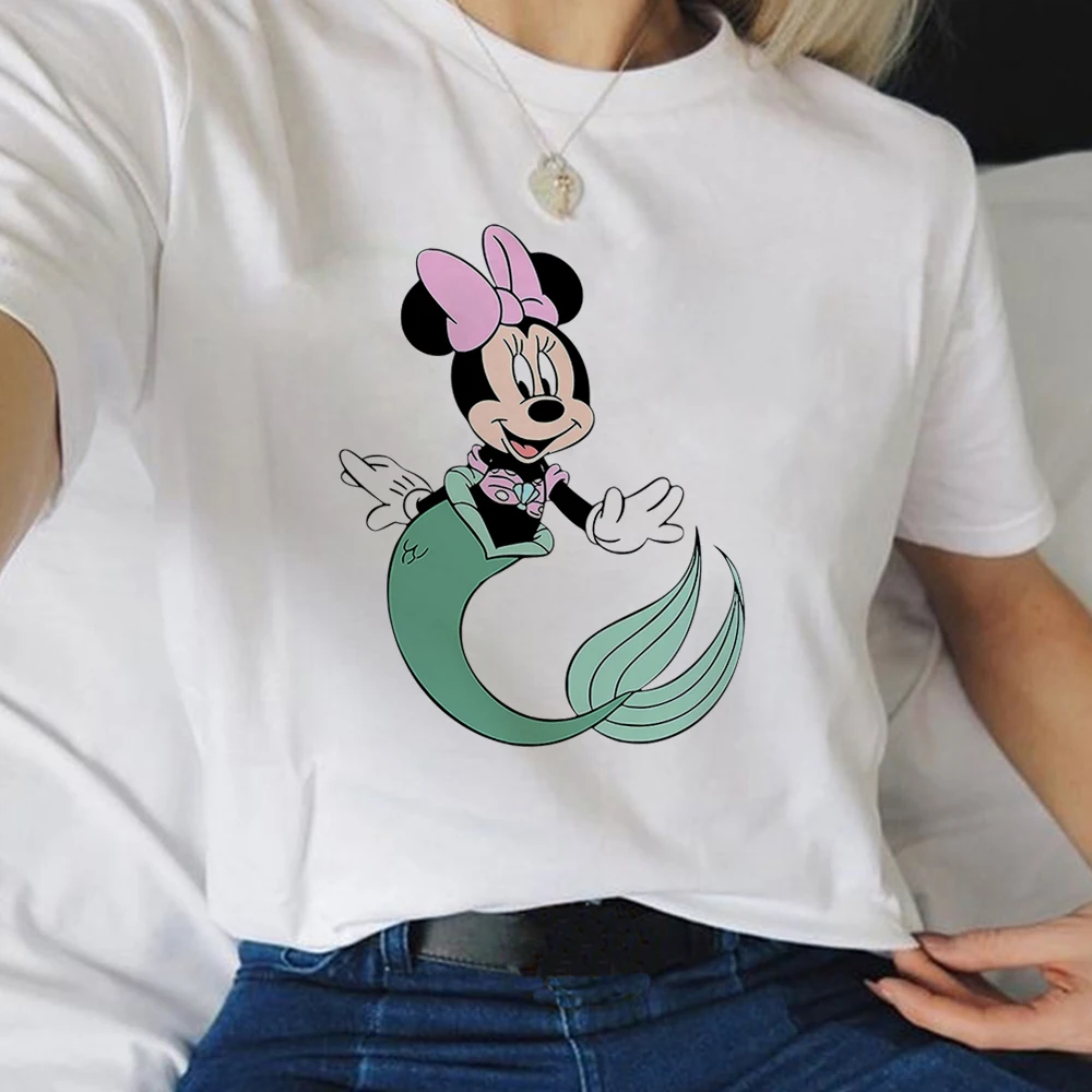 Женские футболки Minnie Cos Tinkerbell Disney Series, удобные футболки с круглым вырезом и принтом, женский уличный топ, милая одежда