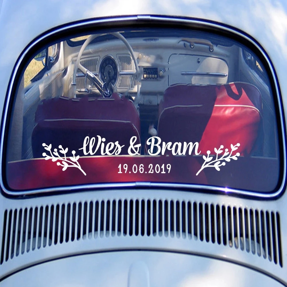 Индивидуальные наклейки с именем и датой, сделай сам, свадебный автомобиль, Декор, Виниловая наклейка, персонализированные имена невесты, жениха с свадебной датой T210917