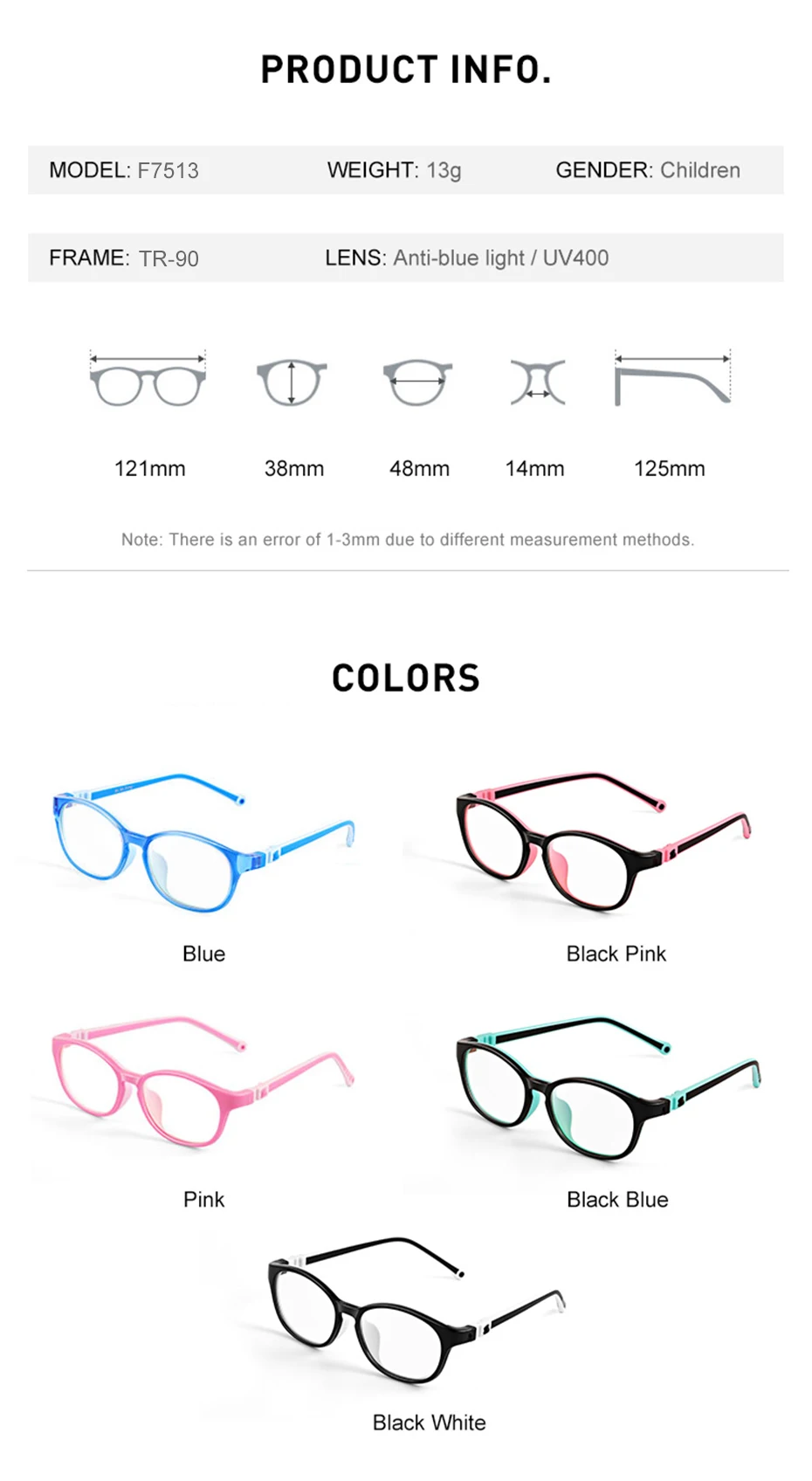 CAPONI классические детские очки, очки для девочек с защитой от синего излучения, оригинальный дизайн, защита от УФ лучей, Детские TR-90 очки с оправой, F7513