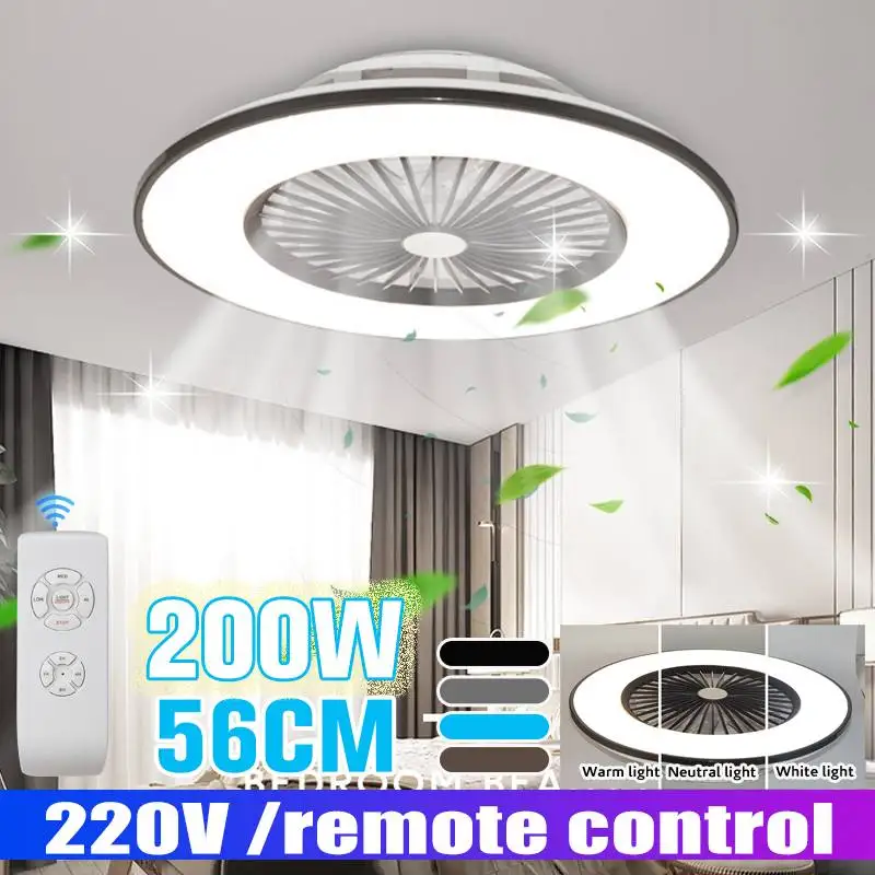 Потолочный вентилятор с регулируемой яркостью, лампа с дистанционным управлением, декоративный современный светильник для спальни, электрический вентилятор, лампа для вентилятора, 56 см