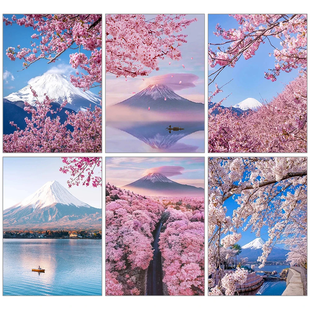 5D алмазная живопись, японская Гора Fuji, домашнее украшение, Сакур...