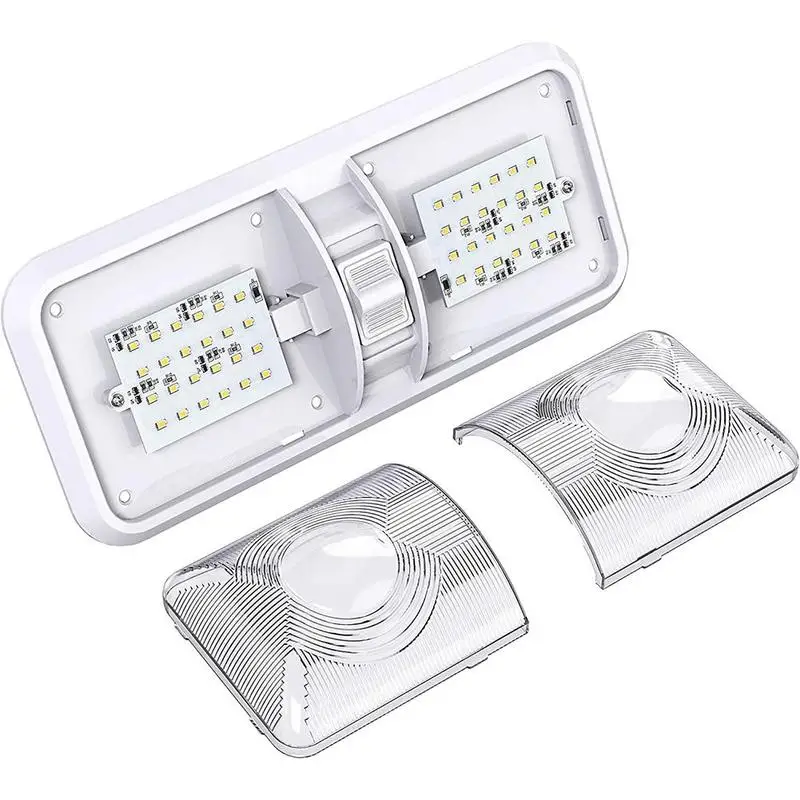 12V 48LED интерьер двойной купол потолочный светильник для RV лодки для кемпера трейлераОсобенности:-100% абсолютно новый anfd высокого качества.-48 высокомощных светодиодов 2835 SMD.-Энергосбережение и защита окружающей среды, используя яркий светодиодный светильник в качестве источника.-Приложения включают 12 вольт постоянного тока рекреационных транспортных средств.-Двойной купольный Светильник поставляется с двумя клиновидными панелями T10: 2x275 люменов, светодиодный светильник.Встроенный 3-позиционный переключатель (для того, чтобы использовать один или обе стороны из светильник приспособление).Спецификация:Материал: пластикЧехол Цвет: белыйСветильник Цвет: 4500K естественный белыйКоличество СВЕТОДИОДНЫЙ: 48 шт. 2835 SMD/каждый светильникНапряжение: 12 ВМощность: 6,5 WРазмер: 285*127*38 (мм) (LxWxT)Длина кабеля: прибл. 19 смПрименение: RV светильник на крыше, автомобильный интерьерный светильник s, автомобильный doom светильник s и т. Д.Количество: 1 шт.Примечание:1. (ВАЖНО) инструкции не включены. Настоятельно рекомендуется Профессиональная установка2. Перед оплатой внимательно проверьте таблицу размеров.3. Замеры сделаны вручную, поэтому возможны 0,5-1 дюйм разницы в связи с тем, что измерения выполнены вручную.(1 дюйм = 2,54 см)4. Цвет фактического товара может немного отличаться от изображения из-за различий в экране компьютера, спасибо за понимание.Посылка включает в себя:1 х Двойной купольный светильник