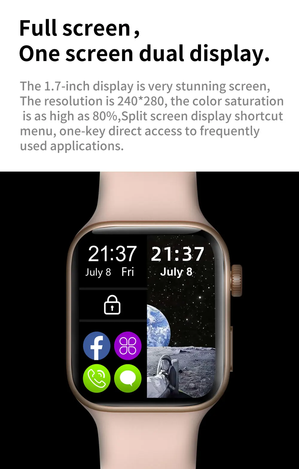 Примечание:1. Эти часы имеют размер 44 мм, у них есть только одна круглая кнопка, пожалуйста, свяжитесь с нами, чтобы просмотреть более подробную информацию и реальные фотографии перед покупкой.2. Пожалуйста, не помещайте умные часы в горячую воду или в воду в течение длительного времени.3. Умные часы не могут синхронизировать телефон ios с телефонной книгой и сообщениемСпецификация:Набор микросхем: MTK2502DРазмер: 44*38*10,7 ммМатериал корпуса: цинковый сплавРемешок: подходит для всех 42/44 мм и 40/38 мм оригинальный плечевой ременьЗарядное устройство: магнитное зарядное устройствоЦвет: черный и серебристыйЭкран: 1,75 HD IPS, 320*385Сенсорный экран: 2.5D изогнутый емкостный полный сенсорный экранВерсия Bluetooth: 3,0, 4,0Аккумулятор: литий-полимерный аккумулятор большой емкости 220 мАчЯзыки: английский, французский, испанский, польский, португальский (Бразилия) Италия, голландский, малайский, индонезийский, немецкий, вьетнамский, русский, турецкий, арабский, тайский, греческий, японскийФункция:Основные функции: поддержка звонков по Bluetooth, проверка температуры тела, частота сердечных сокращений, BP и ECGШаги, Fruit wath 5 размер, 44 мм сменный ремешок, умное меню стиля улей, меню nine box, IP68 водонепроницаемыйBluetooth Push: SMS, WeChat, электронная почта, Facebook новости и другие уведомления приложений напоминаниеМонитор сердечного ритма: монитор сердечного ритма, мониторинг сердцебиения 24 часаЭКГ: анализ данных ЭКГШагомер: упражнения, потребление калорий, запись пробегаНапоминание о малоподвижности: пришло время двигаться и менять свой нездоровый образ жизниМонитор сна: запись и анализ состояния сна научно и количественноНайти телефон: напоминание о потере. Двусторонний поискМузыка Bluetooth: управление воспроизведением музыки на вашем телефонеВызов: Поддержка Bluetooth звонков с динамиком и микрофономВибрирующий двигатель: ПоддержкаДругие функции: будильник, календарь, секундомерУпаковка:Умные часы * 1Зарядный кабель * 1Руководство пользователя * 1Оригинальная Розничная коробка * 1